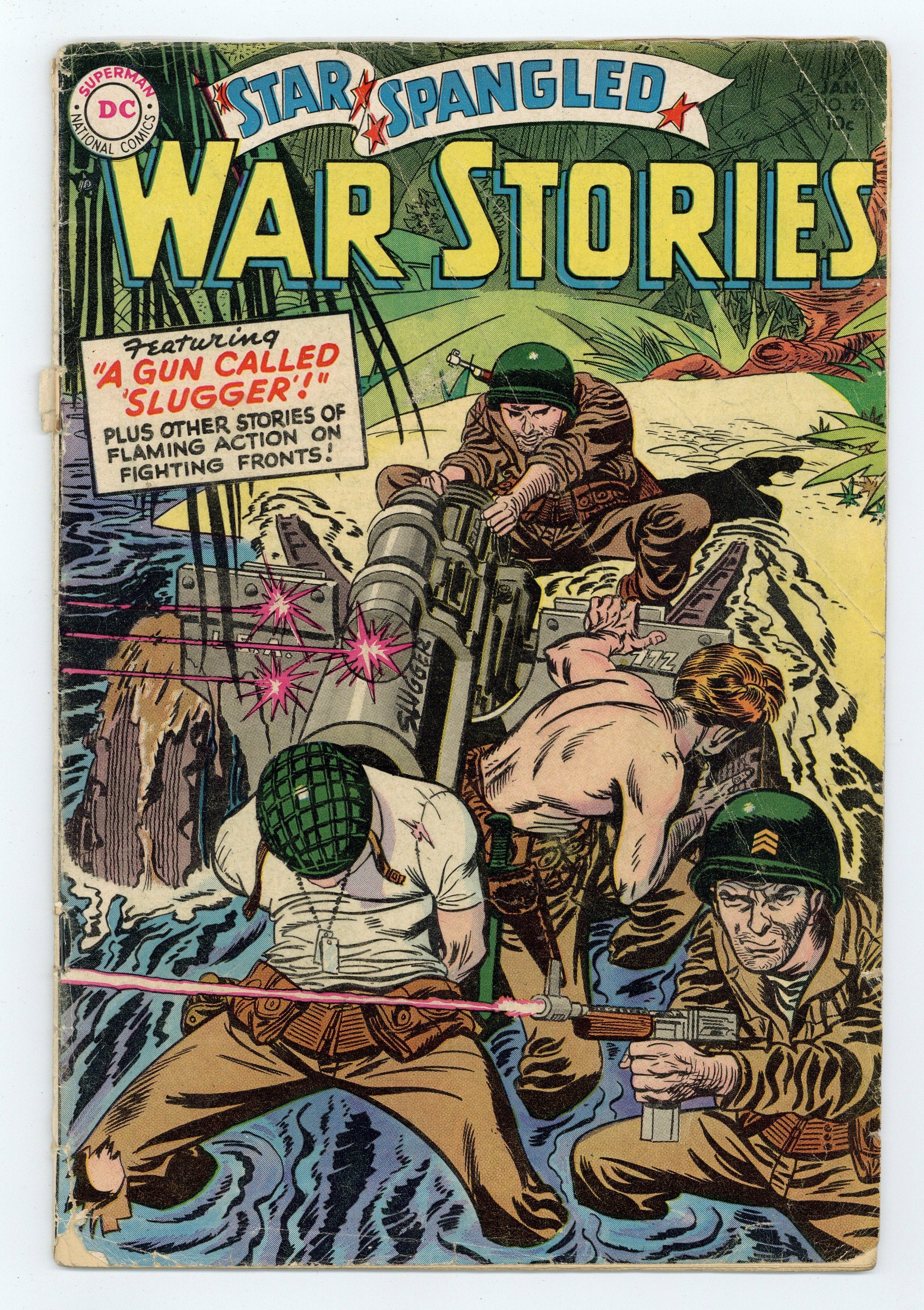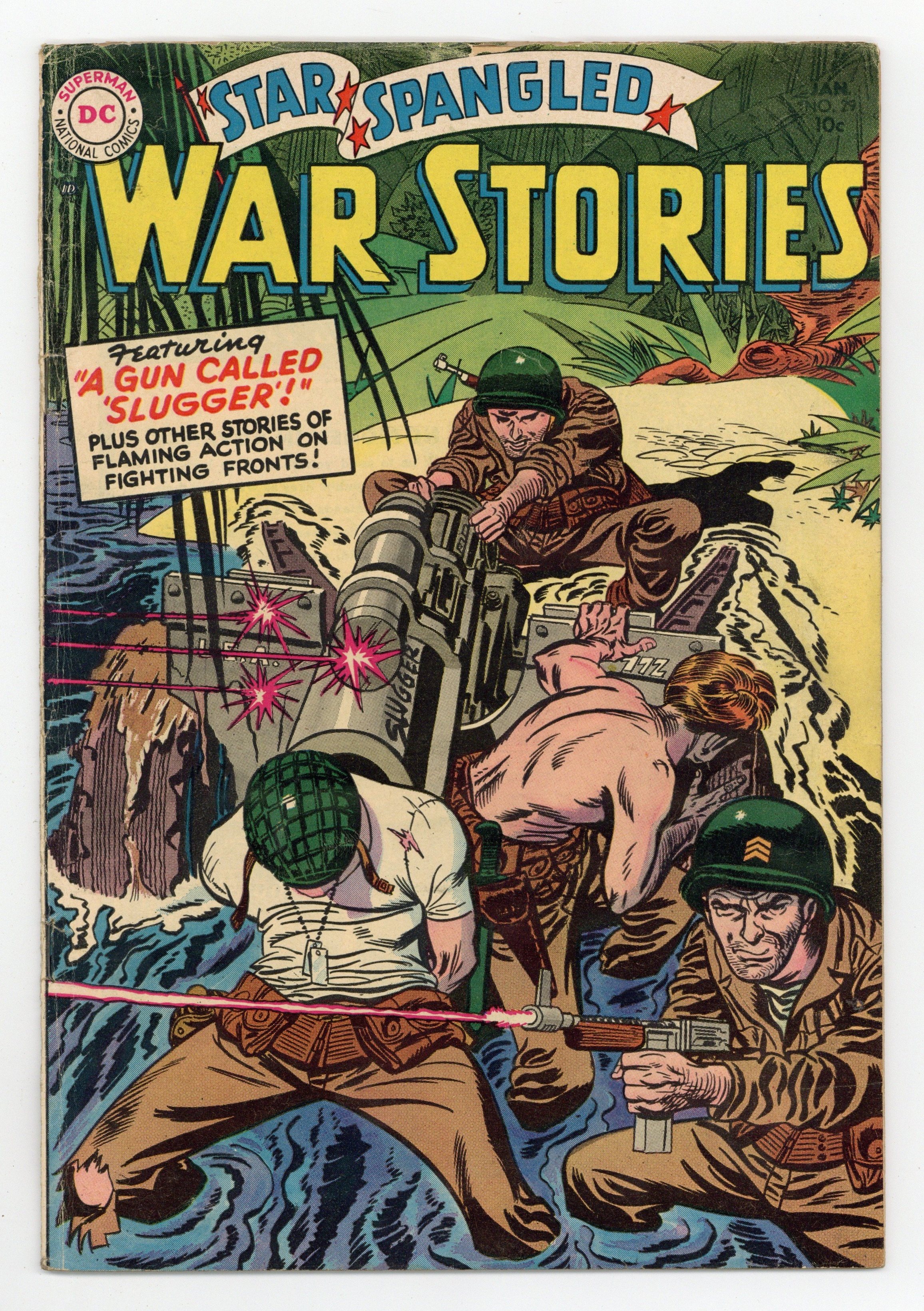 Cover art by Jerry Grandenetti. A Gun Called Slugger, script by Robert Kanigher, art by Irv Novick. Supply Truck Commando, script by David Kahn, art by Mort Meskin. 3 Texas Troopers, script by David Kahn, art by Arthur Peddy. Torpedo Punch, script by Robert Kanigher, art by Sam Burlockoff. Humor page with Private Diary by Irwin Hansen. Humor page featuring This Ain't The Arm by Irwin Hansen. 36 Pages, Full Color. Cover price $0.10.