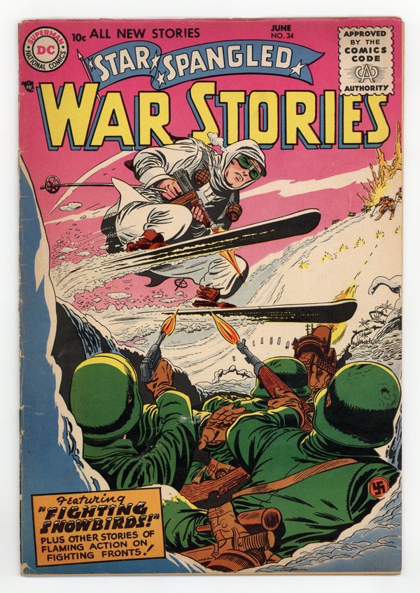 Cover art by Jerry Grandenetti. Fighting Snowbirds, script by Robert Kanigher, art by Jerry Grandenetti. The Tank With a Memory, script by France Herron, art by Russ Heath. High Wire Soldier, script by Robert Kanigher, art by Arthur Peddy. Boomerang Booby Trap, script by Bill Finger, pencils by Jerry Grandenetti, inks by Robert Stuart. Humor page starring General Little by Irwin Hansen. 36 Pages, Full Color. Cover price $0.10.