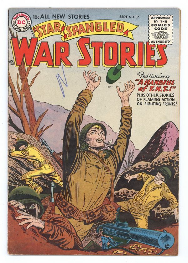 Cover art by Jerry Grandenetti. A Handful of T.N.T., script by Robert Kanigher, pencils by Carmine Infantino, inks by Joe Giella. Champion Duo, script by Dave Wood, art by Don Heck. Battle Winds, script by France Herron, pencils by Jerry Grandenetti, inks by Bernard Sachs. One-Man Company, script by Bill Finger, art by Russ Heath. Private Diary humor page by Irwin Hansen. 36 Pages, Full Color. Cover price $0.10.