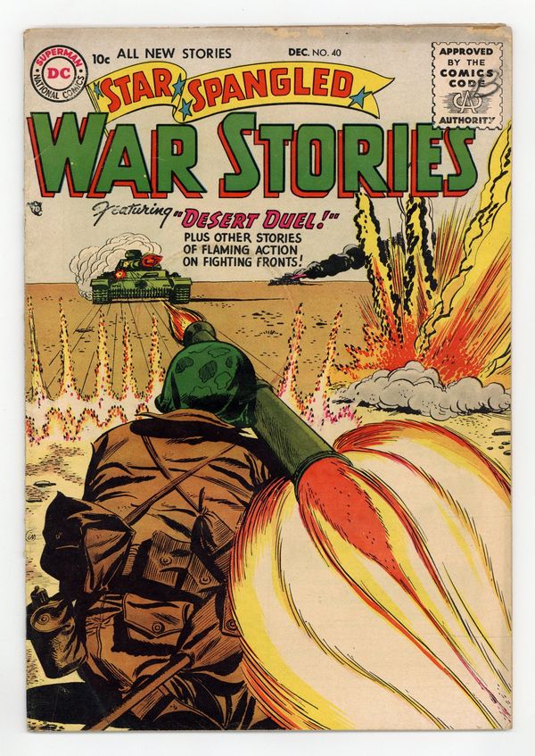 Cover art by Irv Novick. Desert Duel, script by Robert Kanigher, pencils by Jerry Grandenetti, inks by Joe Giella. Iceberg War, script by Bob Haney, pencils by Ross Andru, inks by Mike Esposito. T.N.T. Trail, script by David V. Reed, art by Bob Brown. Private Battle, script by France Herron, art by Irv Novick. Humor page starring Private Diary by Irwin Hansen. 36 Pages, Full Color. Cover price $0.10.