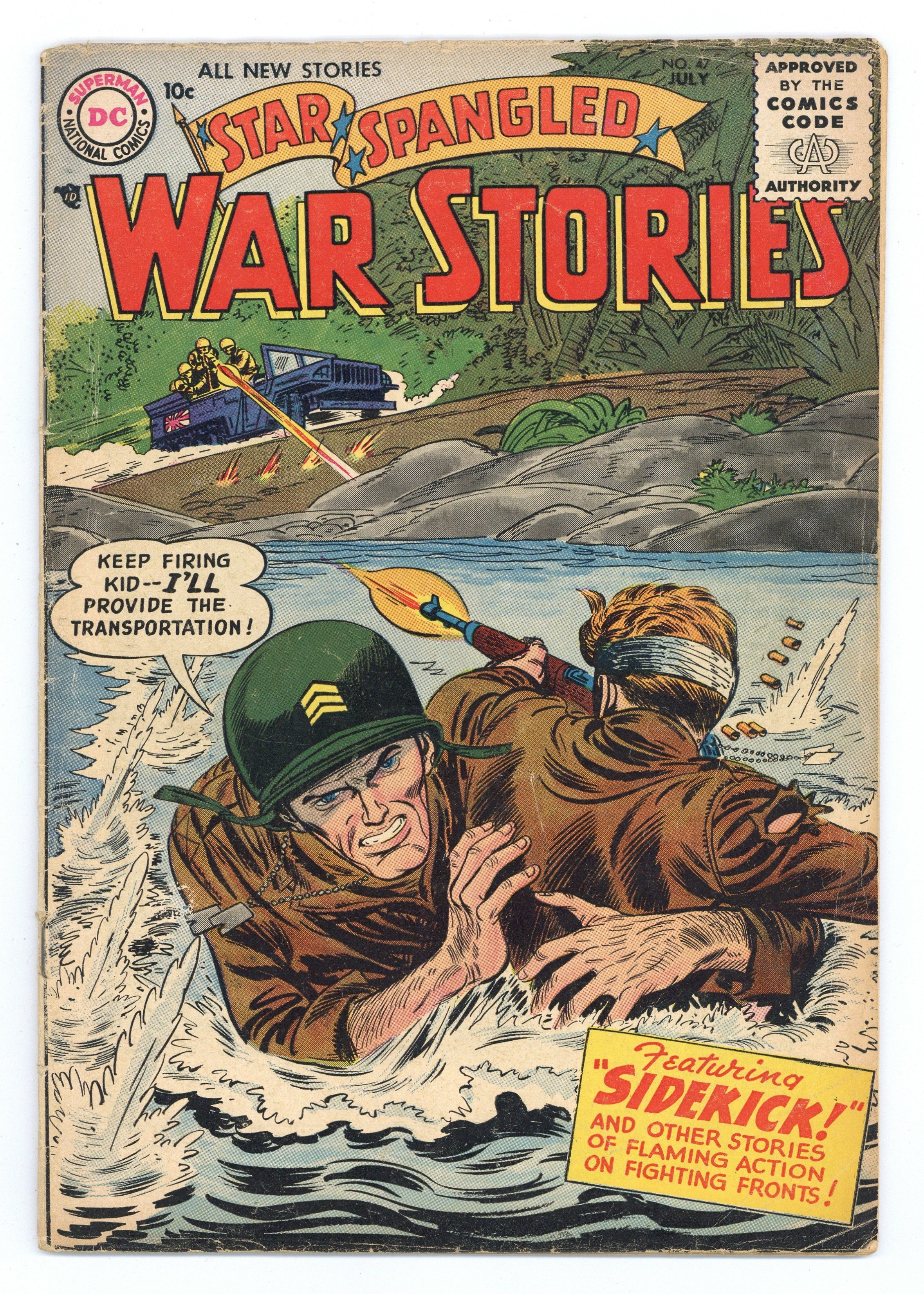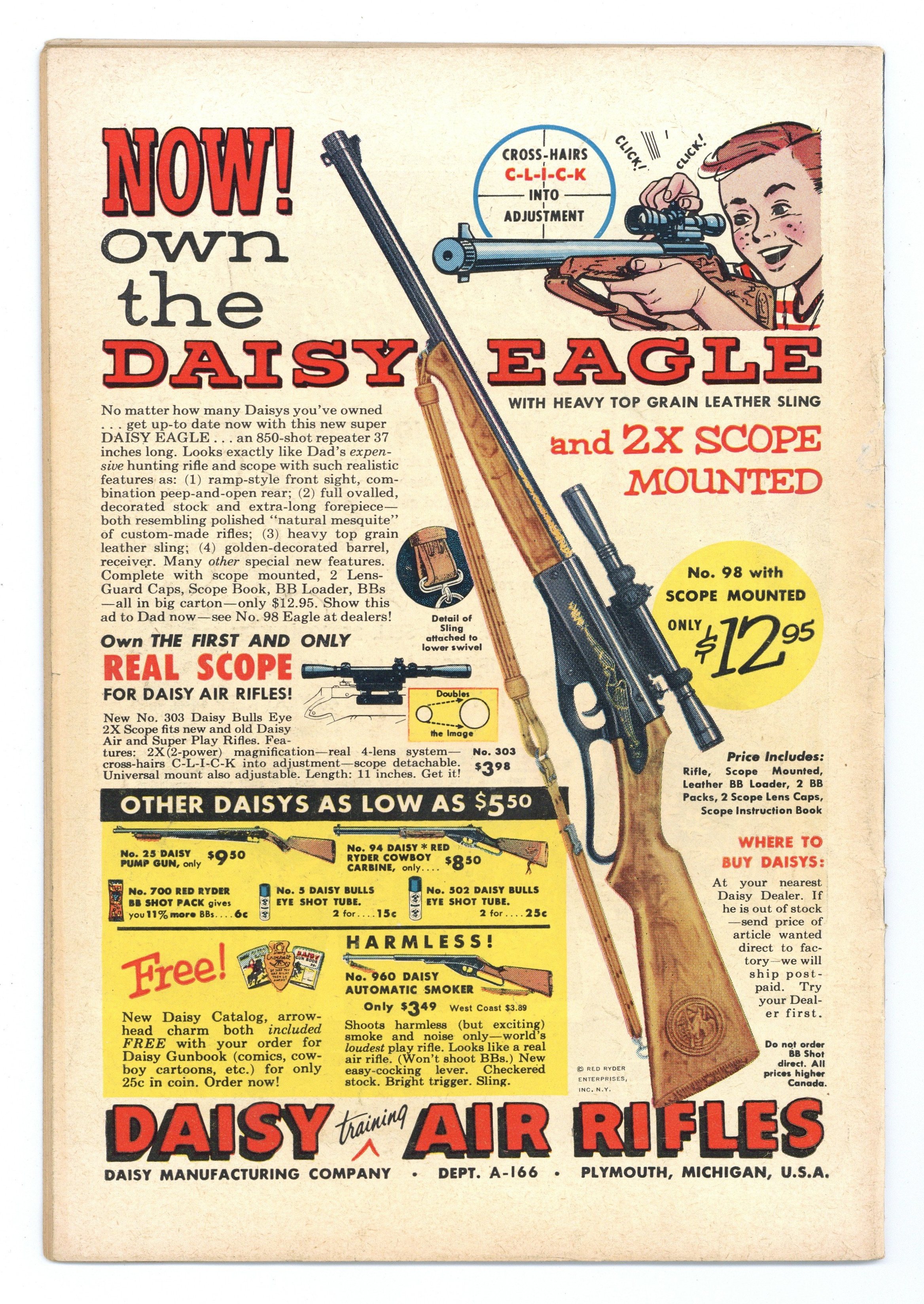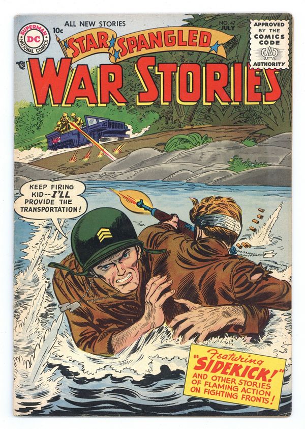 $40.00Cover art by Jerry Grandenetti. Sidekick, script by Robert Kanigher, art by Russ Heath. The Ghost Raider, script by Bob Haney, art by Irv Novick. Bull's Eye Letter, script by Bob Haney, pencils by Ross Andru, inks by Mike Esposito. Battle Parade, script by Bob Haney, art by Jerry Grandenetti. Humor page starring Private Pete by Irwin Hansen. 36 Pages, Full Color. Cover price $0.10.