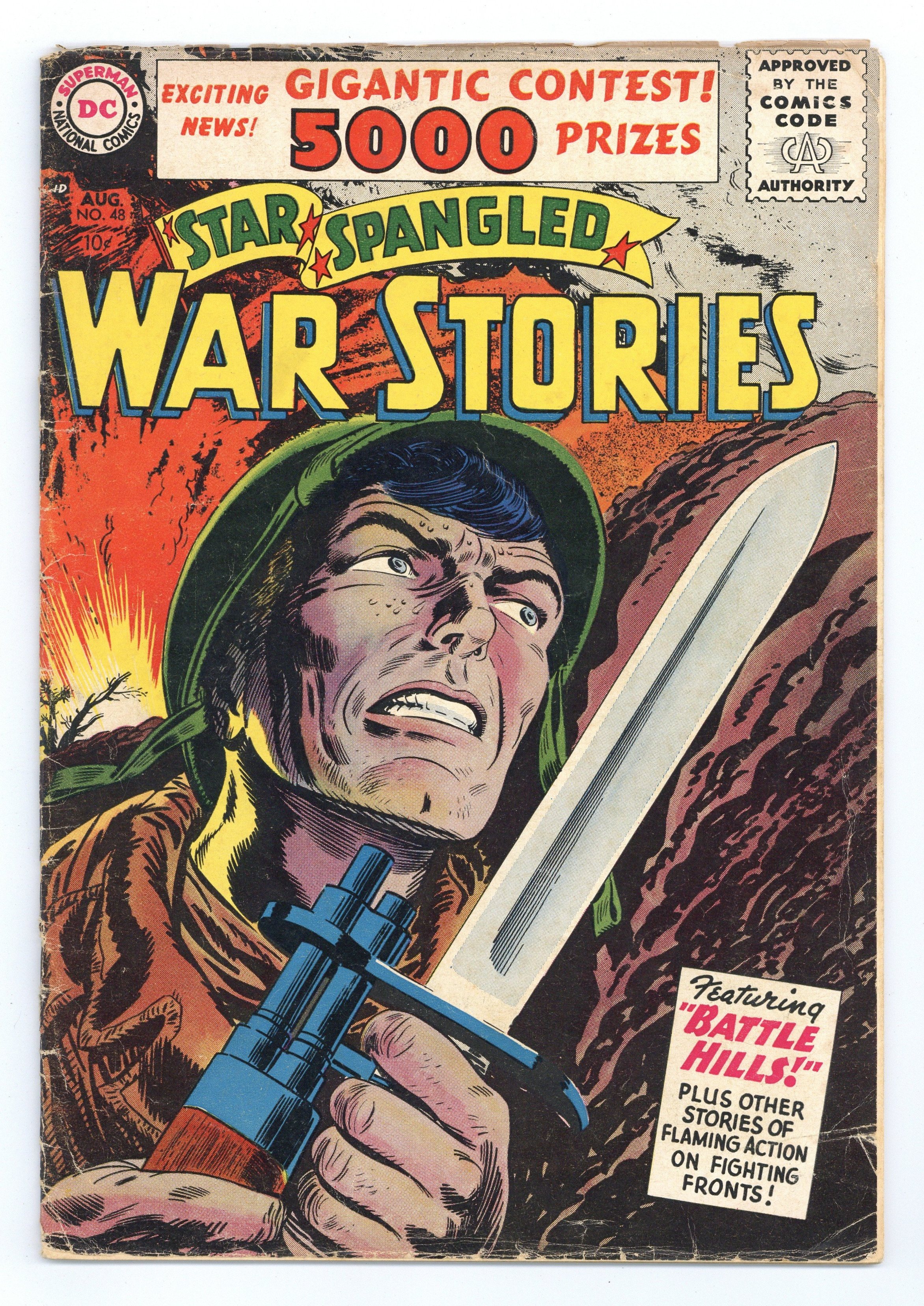 Cover art by Jerry Grandenetti. Battle Hills, script by Robert Kanigher, pencils by Ross Andru, inks by Mike Esposito. Battle Hills, script by Robert Kanigher, pencils by Ross Andru, inks by Mike Esposito. Bazooka Battle Roll, script by Bob Haney, art by Irv Novick. Underground Soldier, script by Jack Miller, pencils by Ross Andru, inks by Mike Esposito. Private Pete humor page by Henry Boltinoff. 36 Pages, Full Color. Cover price $0.10.