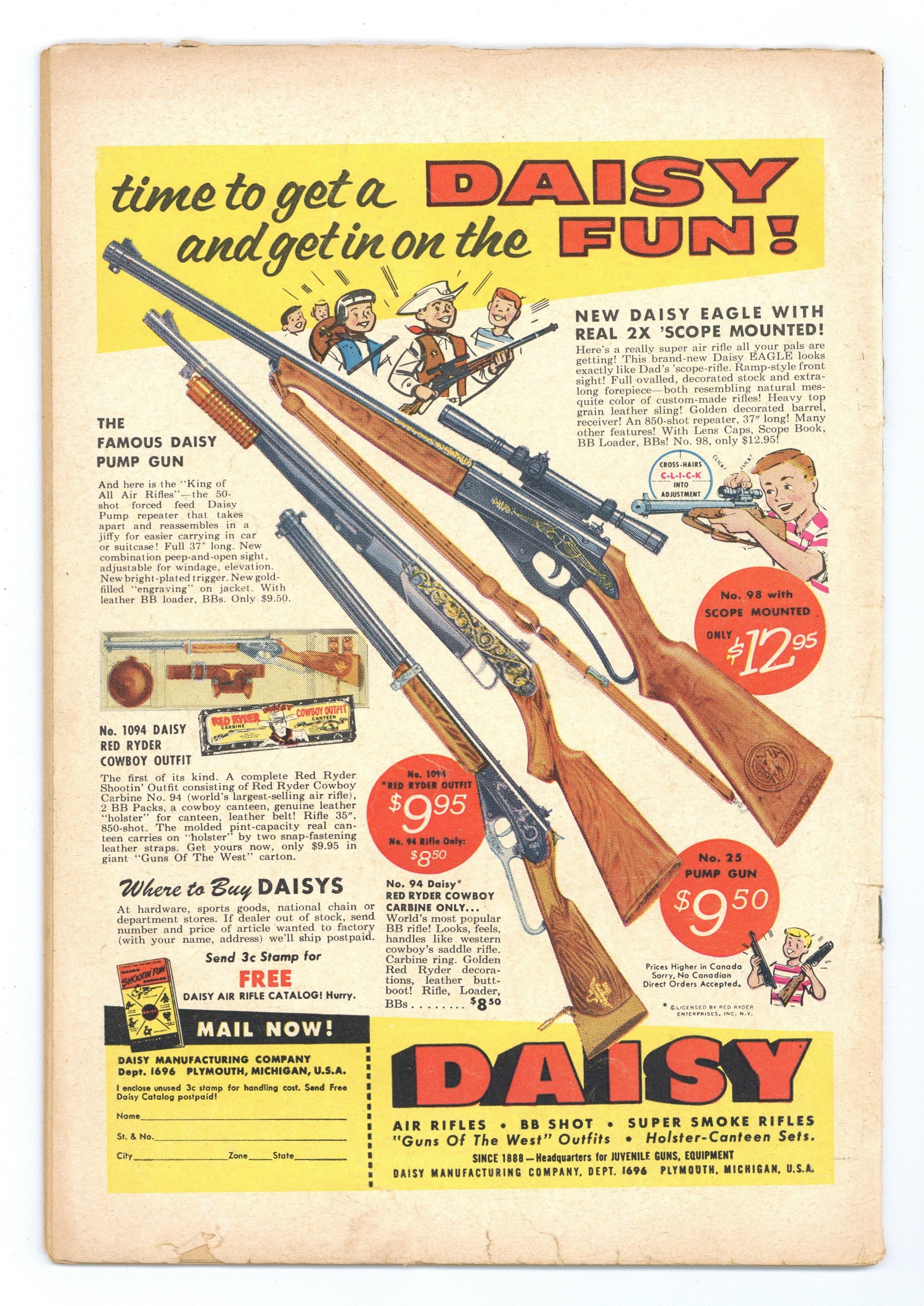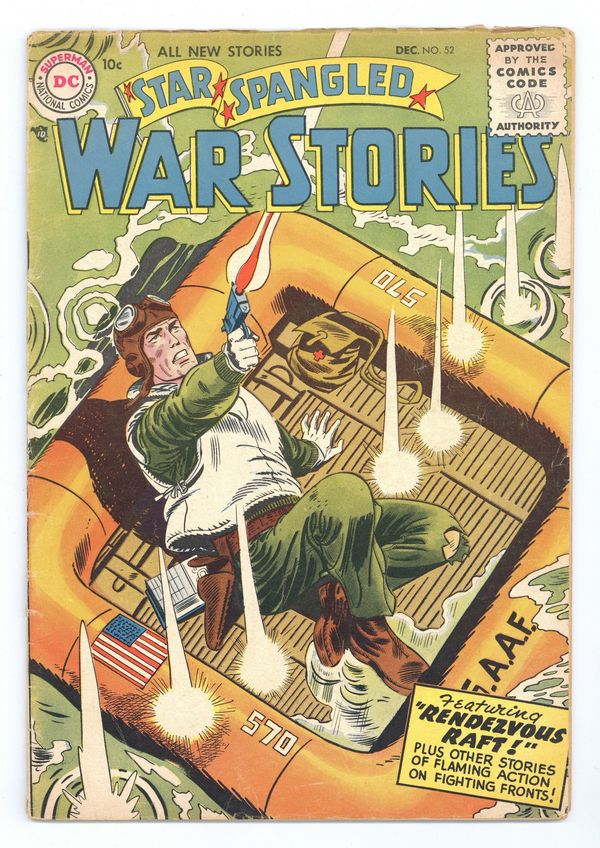 Cover art by Jerry Grandenetti. Cannon-Man, script by Bill Finger, art by Russ Heath. Dusty Sailor, script by Dave Wood, art by Jack Abel. TNT Kid, script by Bill Finger, pencils by Carmine Infantino, inks by Robert Stuart. Rendezvous Raft, script by Bill Finger, art by Jerry Grandenetti. Private Pete half-page by Henry Boltinoff. Khaki-Yaks humor page by Henry Boltinoff. 36 Pages, Full Color. Cover price $0.10.