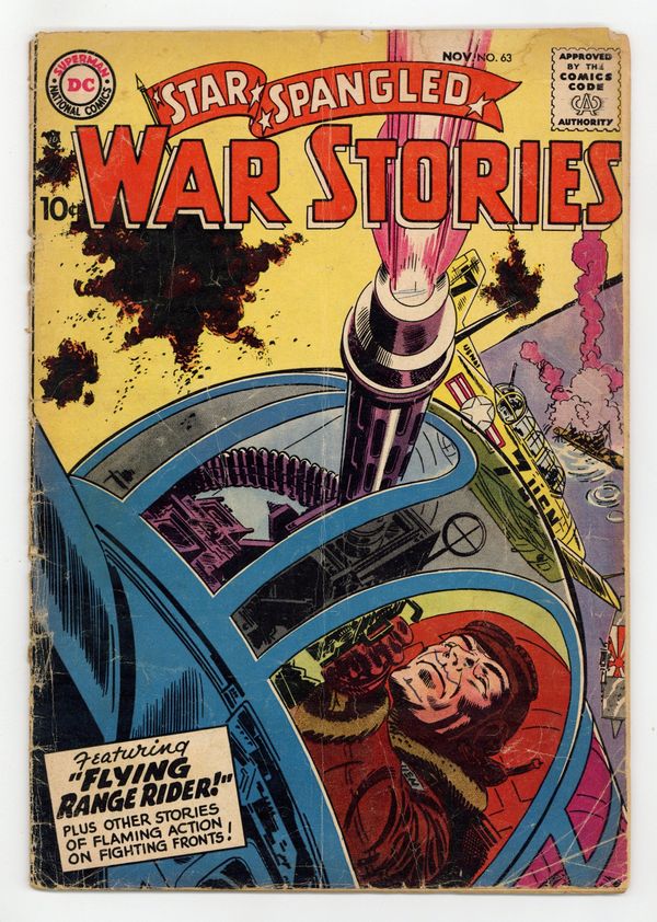 Cover art by Jerry Grandenetti. Flying Range Rider, script by Robert Kanigher, art by Jerry Grandenetti. Set Up a Line, script by Bill Finger, art by Jack Abel. It Can't Get Rougher, script by Bill Finger, art by Irv Novick. The Monkey Wrench, script by France Herron, pencils by Ross Andru, inks by Mike Esposito. Khaki-Yaks humor half-page by Irwin Hansen. First in War, script and pencils by Morris Waldinger, inks by Tom Nicolisi. 36 Pages, Full Color. Cover price $0.10.