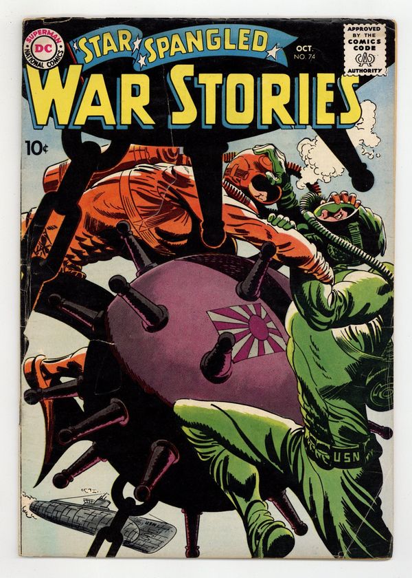 $18.25Cover art by Jerry Grandenetti. Frogman Bait, script by Robert Kanigher, art by Jerry Grandenetti. A Tree On Tarawa, script by France Herron, art by Joe Kubert. Bush-League Battle, script by Bill Finger, art by Mort Drucker. Private Pete humor page by Henry Boltinoff. One page story featuring Navy Log, script and pencils by Morris Waldinger, inks by Tom Nicolisi. 36 Pages, Full Color. Cover price $0.10.
