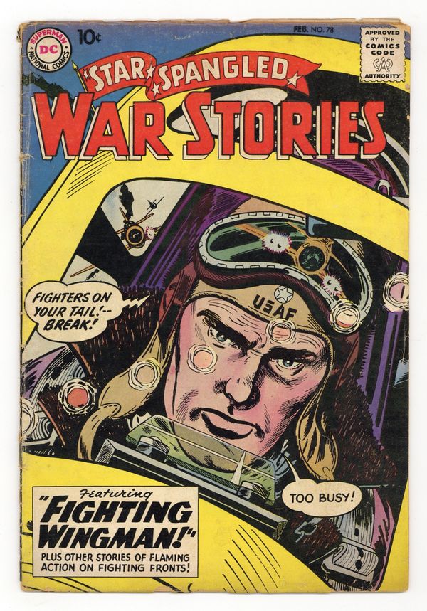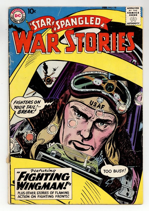 Cover art by Jerry Grandenetti. Fighting Wingman, script by Bob Haney, pencils and inks by Mort Drucker. Hop, Skip and Jump War, script by Bob Haney, pencils by Bob Forgione, inks by Jack Abel. No Combat Report Today, script by Robert Bernstein, pencils by Ross Andru, inks by Mike Esposito. Medal for a Marine, script by Robert Kanigher, art by Mort Drucker. Private Diary humor page by Irwin Hansen. 36 Pages, Full Color. Cover price $0.10.