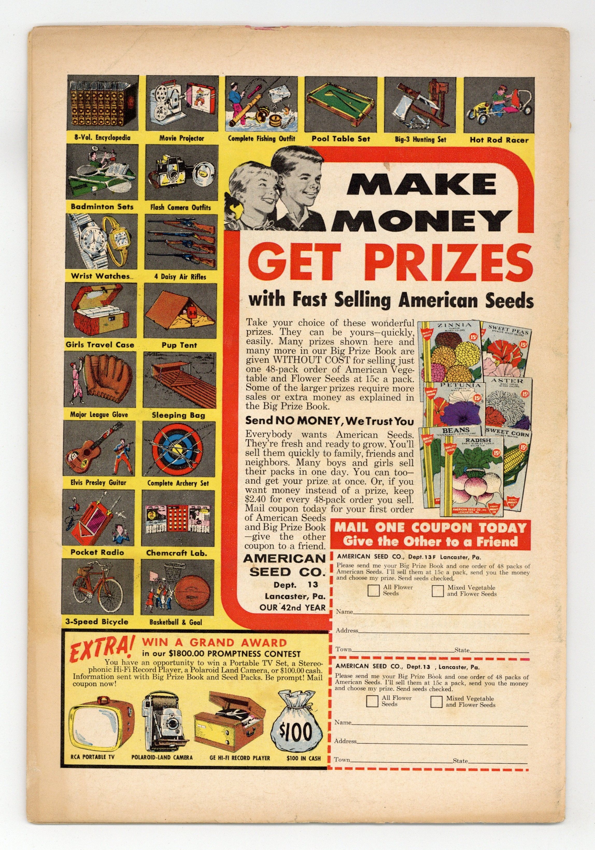 Cover pencils by Ross Andru, inks by Mike Esposito. Island of Armored Giants! featuring War That Time Forgot, script by Robert Kanigher, pencils by Ross Andru, inks by Mike Esposito. No Ammo for "A" Company, script by Bob Haney, art by Jerry Grandenetti. The Battle of the Sunken Village starring Mademoiselle Marie, script by Bob Haney, art by Irv Novick. French Decorations of WWII fact half-page, script and pencils by Morris Waldinger, inks by Tom Nicolisi. Sunshine Division, Battle Story of the 40th Infantry Division, script and pencils by Morris Waldinger, inks by Tom Nicolisi. 36 Pages, Full Color. Cover price $0.10.