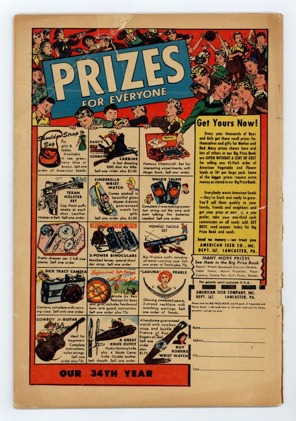 Cover art by Russ Heath. Uninhabited, art by Russ Heath; The moon is a living organism like Ego, the living planet. Eyes of March, art by Sy Grudko; A man gets a pair of glasses which make everyone appear to have his own face. Death of a Vampire text story. The Back Door, art by Pete Morisi; A salesman tries to make a pitch to the dead of a funeral parlor but they tell him that they buy nothing and stay for free. The Killers, art by Harry Lazarus; Scientists invent a virus which turns people into crazy killers without reflection in mirrors; The Ugly Man, art by Vernon Henkel. 36 pgs. $0.10. Cover price $0.10.