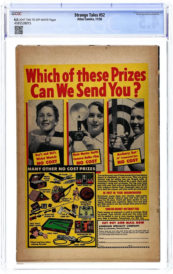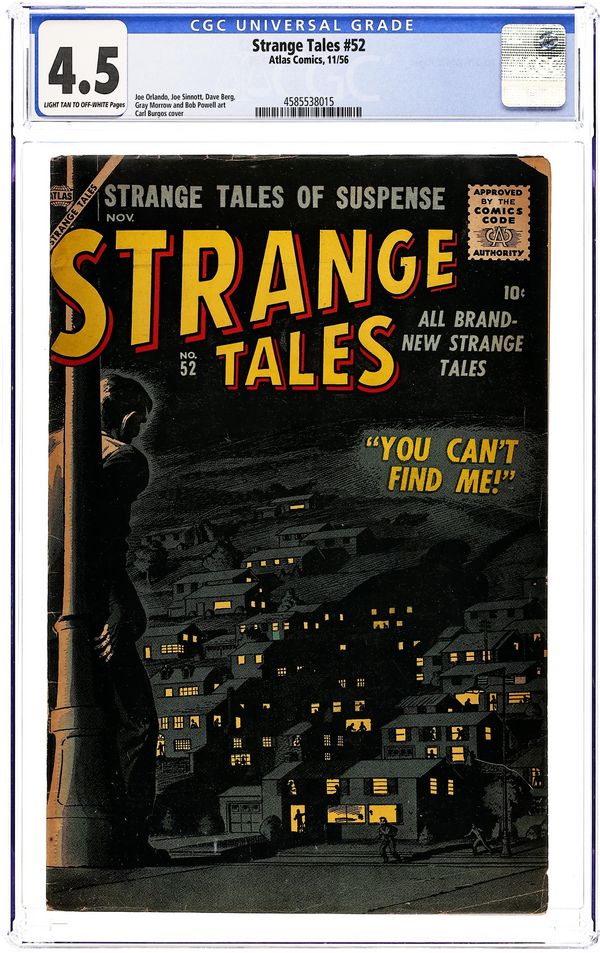 "Simon's Stooge!" (art by Joe Sinnott), "Who Lurks There?" (art by Dave Berg), "The Empty Chair" (art by Joe Orlando), "The Frightened Man," "The Last of Professor Hogarth," "You Can't Find Me!" and a two-page text story, "Hidden Mountain." Bill Everett cover. 36 pgs. Cover price $0.10.