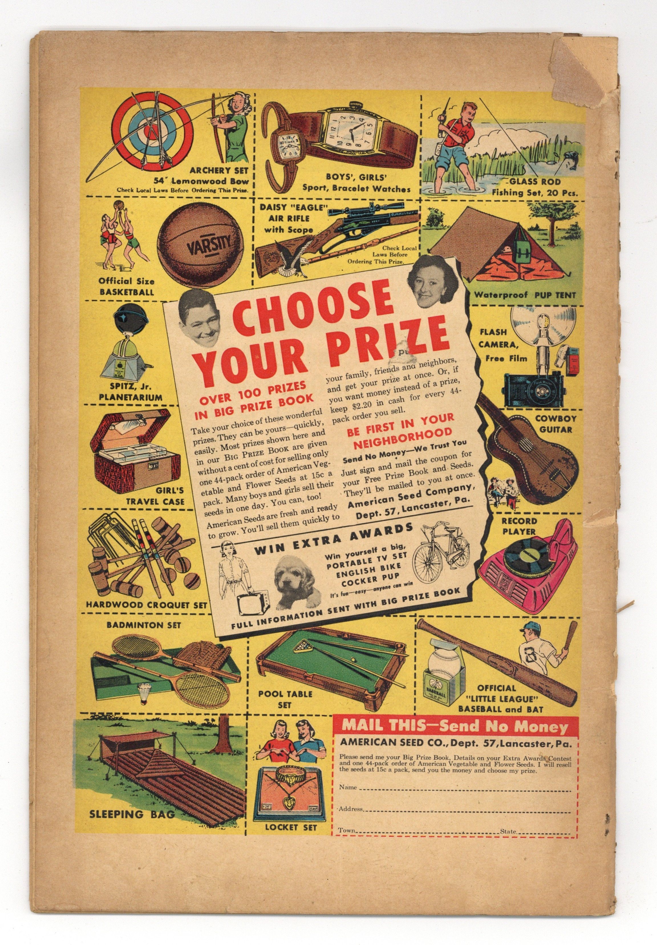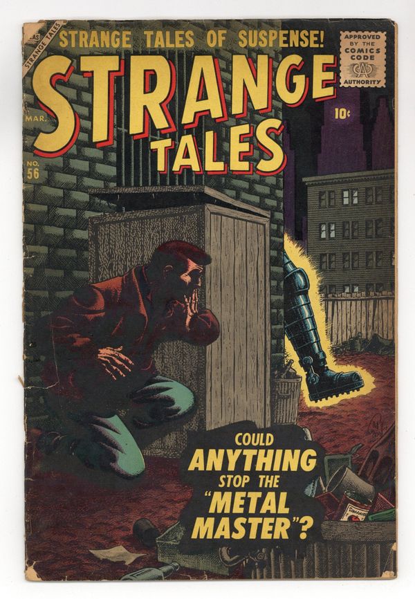 Cover art by Bill Everett. "Something Is On This Ship!", art by Doug Wildey; The first mate of a ship tries to convince the captain that there are spooks aboard his ship, but when the captain's hair turns white at something he's seen, the first mate begins to wonder if there really are spooks aboard. "The Metal Master!", art by Vince Colletta; An artist creates a robot to paint for him but smashes it when it turns the tables and forces him to paint. "More Than a Mortal!", art by Pete Morisi; A man with a theory that Shakespeare was more than mortal murders his uncle for his money, but Shakespeare's ghost contrives to make him own up to the crime. "Hide-Out!", art by Robert Sale; An owner of criminal hide-outs comes across a wishing jewel that he uses to eliminate his competition but when he gets raided by the police he realizes that there is nowhere to run because his competitors have all been put out of business. "The Fountain of Youth" text story. "Nothing Can Stop It," art by Howard O'Donnell; A chemist tries to make a solvent that can eat through anything for criminal purposes but when succeeds, he realizes that he failed to consider nothing could contain such a compound. "The Shock!", script by Carl Wessler, art by Reed Crandall; A deadbeat finds that when his foot makes contact with a power cord and he touches the radiator the shock he receives teleports him to distant towns at random; He decides to use this to steal the company payroll. 36 pgs., full color. Cover price $0.10.