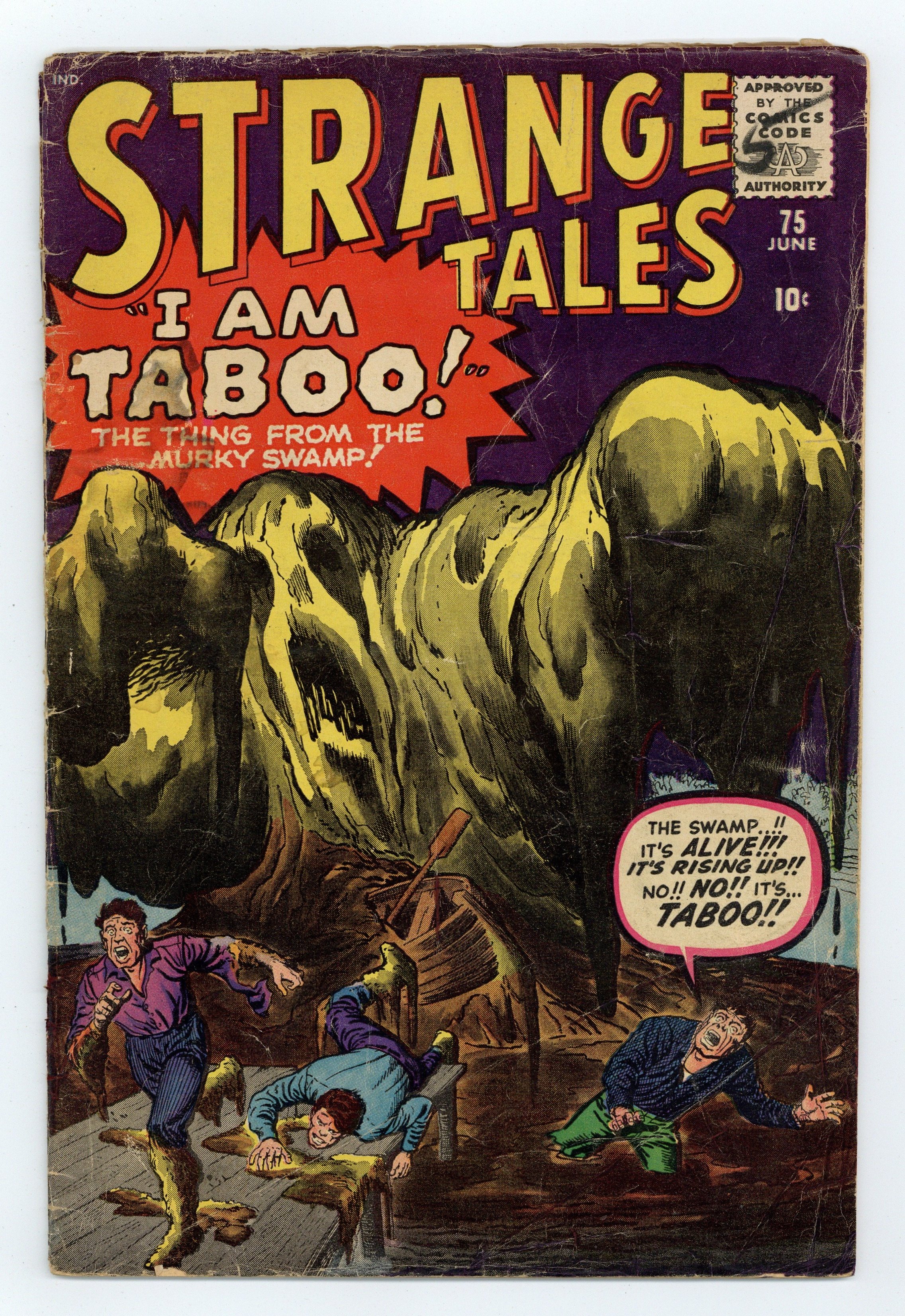 Prototype issue (Iron Man). Cover pencils by Jack Kirby, inks by Steve Ditko. "Taboo! The Thing From Murky Swamp!", pencils by Jack Kirby, inks by Dick Ayers; A popular adventure writer finds a giant mud creature from another planet stranded in a Brazilian swamp; The alien tricks him into bringing all Earth's scientific records for nefarious purposes, but is destroyed by an H-bomb hidden with the records. "The Return of the Totem!", art by Steve Ditko; The totem frightens the two convicts into a state of shock, but then goes on a rampage through the reservation and a nearby town; The chieftain concocts a potion to destroy the totem. "The Strange Stone" text story. "Doomsday!", art by Paul Reinman; Two scientists accidentally release a gas that will kill all life on Earth; An unnatural wind disperses the gas, convincing one of the scientists of the others belief in a higher power. "I Made The Hulk Live" (not the superhero, but a robot), art by Don Heck; A short and bitter scientist is obsessed with building a powerful giant robot body; He traps himself inside without the means to activate the robot, living out his life on the food which he'd stored inside. 36 pgs., full color. Cover price $0.10.