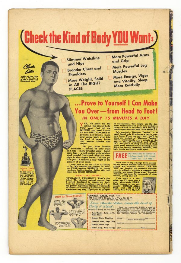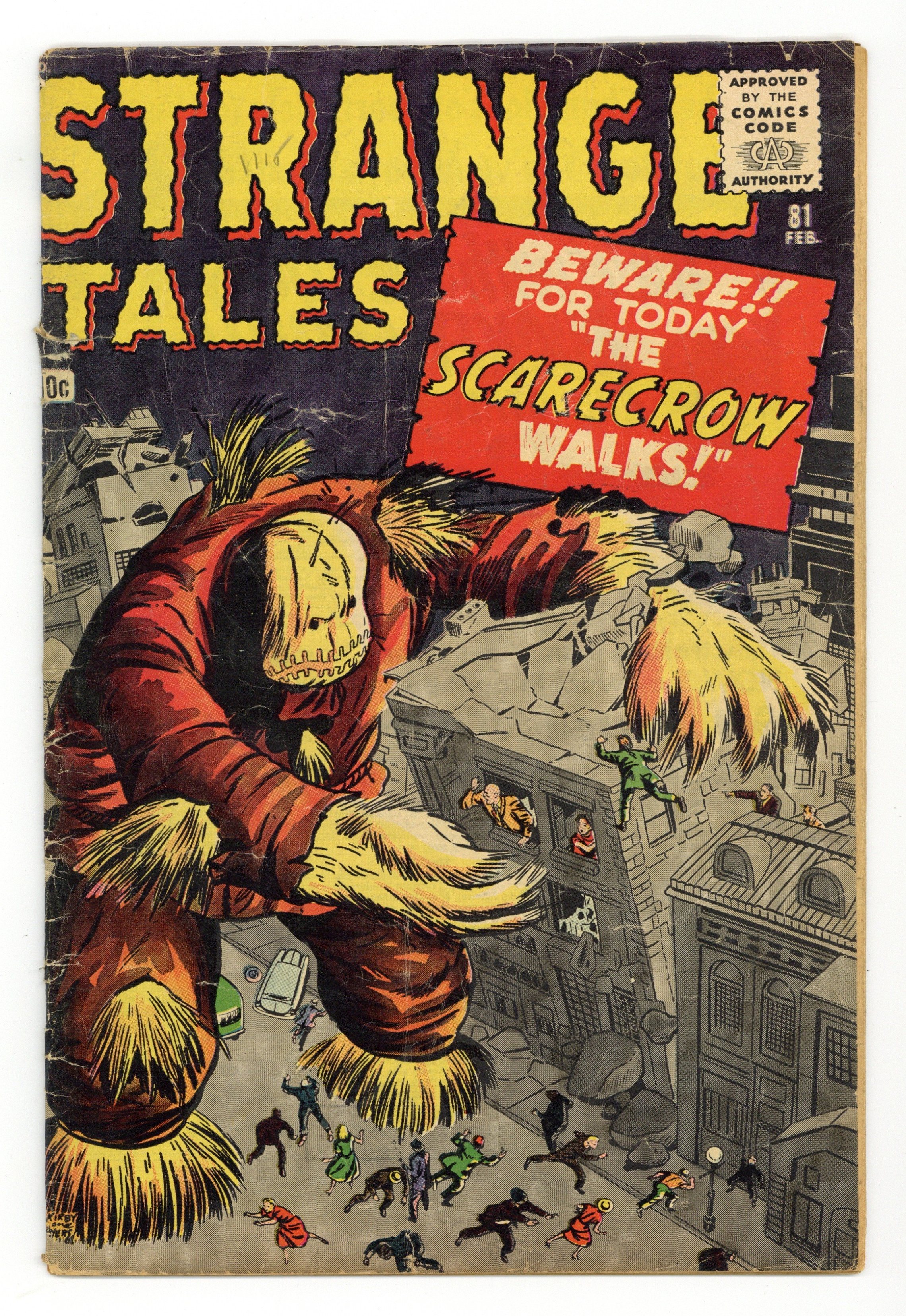 Cover pencils by Jack Kirby, inks by Dick Ayers. "The Scarecrow Walks!", pencils by Jack Kirby, inks by Dick Ayers; A landlord cheats poor farmers out of their land in order to sell it for nuclear tests; Radiation animates the farmers' abandoned scarecrow. "Mystery Trip," art by Joe Maneely; Tommy's uncle returns from a space journey needing to re-learn how to walk on earth instead of floating. "A Giant There Was!", art by Don Heck; A criminal steals beans that grow into a beanstalk leading to the land of giants; He tries to rob a castle, but he is caught and imprisoned with other criminals. "I Went Too Far Back!", art by Paul Reinman; A scientist's assistant travels to the past with a gun to rule a pre-technology world; Instead he finds that time is a loop, and when he travels back too far he finds himself a thousand years in the future. "The Thing in the Cell!", art by Steve Ditko; A corrupt police chief uses fines to fund a giant prison in order to increase his prestige; He jails a passerby for no reason, but is shocked to find that he is an alien leader. 36 pgs., full color. Cover price $0.10.