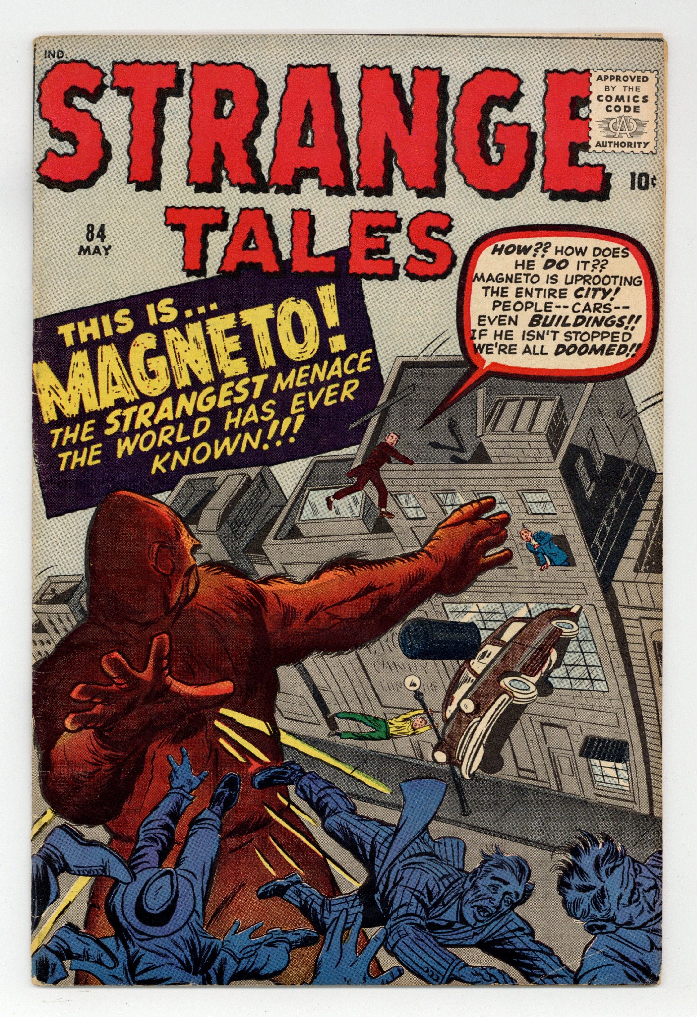 Tags: Marvel Legacy Numbering: Doctor Strange (part 84)$210.00Cover pencils by Jack Kirby, inks by Dick Ayers. "The Wonder of the Ages!!! Magneto!", pencils by Jack Kirby, inks by Dick Ayers (prototype of the X-Men's Magneto); A strong man is exploited and abandoned, unable to find work except in a freak show; His size makes him the perfect pilot for an experimental space flight, on which he gains magnetic powers. "The Inventor" text story. "Twelve Silent Men!", art by Paul Reinman; A greedy lawyer steals a time machine in order to profit from knowledge from the future; Once there he is tried for stealing the machine. "They Met on Mars!", art by Steve Ditko; Two beings in grotesque space suits fight on Mars; One of them destroys the other's ship and escapes, with the two never knowing that they were both humans: one from the US, one from the USSR. 36 pgs., full color. Cover price $0.10.