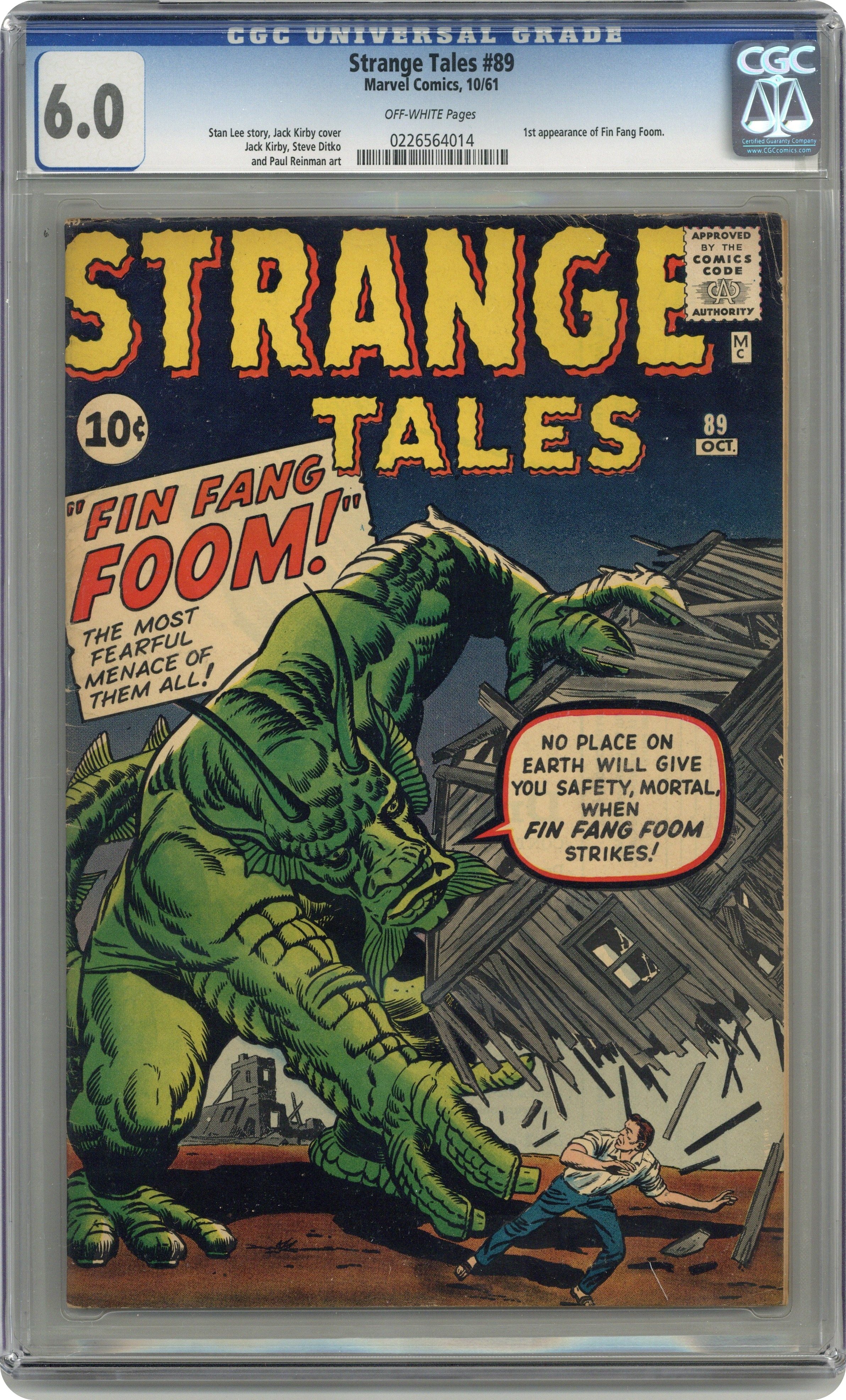 Cover pencils by Jack Kirby, inks by Dick Ayers. 1st appearance of Fin Fang Foom in "Fin Fang Foom!", pencils by Jack Kirby, inks by Dick Ayers; A young historian from Taiwan crosses to the mainland to awake the dragon Fin Fang Foom and foil a communist invasion; He lures the dragon to the coast to wreck the invasion fleet. "The Future" text story. "The Green Things!", script by Stan Lee, art by Steve Ditko; A wealthy retiree keeps a magnificent greenhouse, where he talks to the plants; When a burglar tries to kill him, his plants come to life and stop the intruder, saving their friend's life. "The Touch of Midas!", art by Paul Reinman; A greedy man locates the source of Midass power, planning to stop the undesirable effects with gloves; He gains the power but finds that his gloves turn to gold, dooming him to the same fate as Midas. 36 pgs., full color.