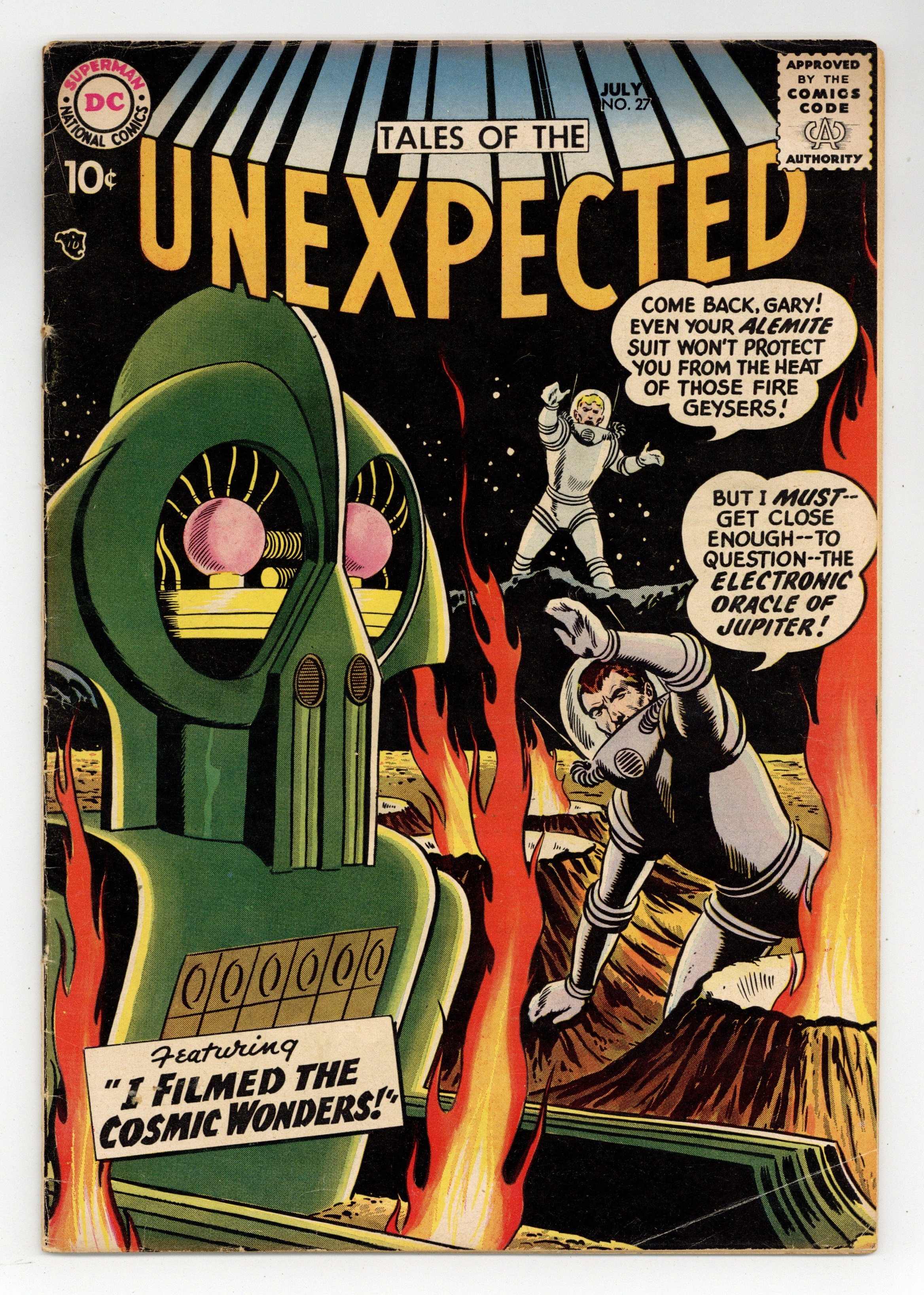 Cover art by Bob Brown. The Prison In Space, art by Nick Cardy. Sneak Attack on Planet Earth, art by Mort Meskin. The Brain Thief, art by George Papp. I Filmed The Cosmic Wonders, art by Lou Cameron; an astronaut faces danger in order to question the Electronic Oracle of Jupiter. 36 Pages, Full Color. Cover price $0.10.