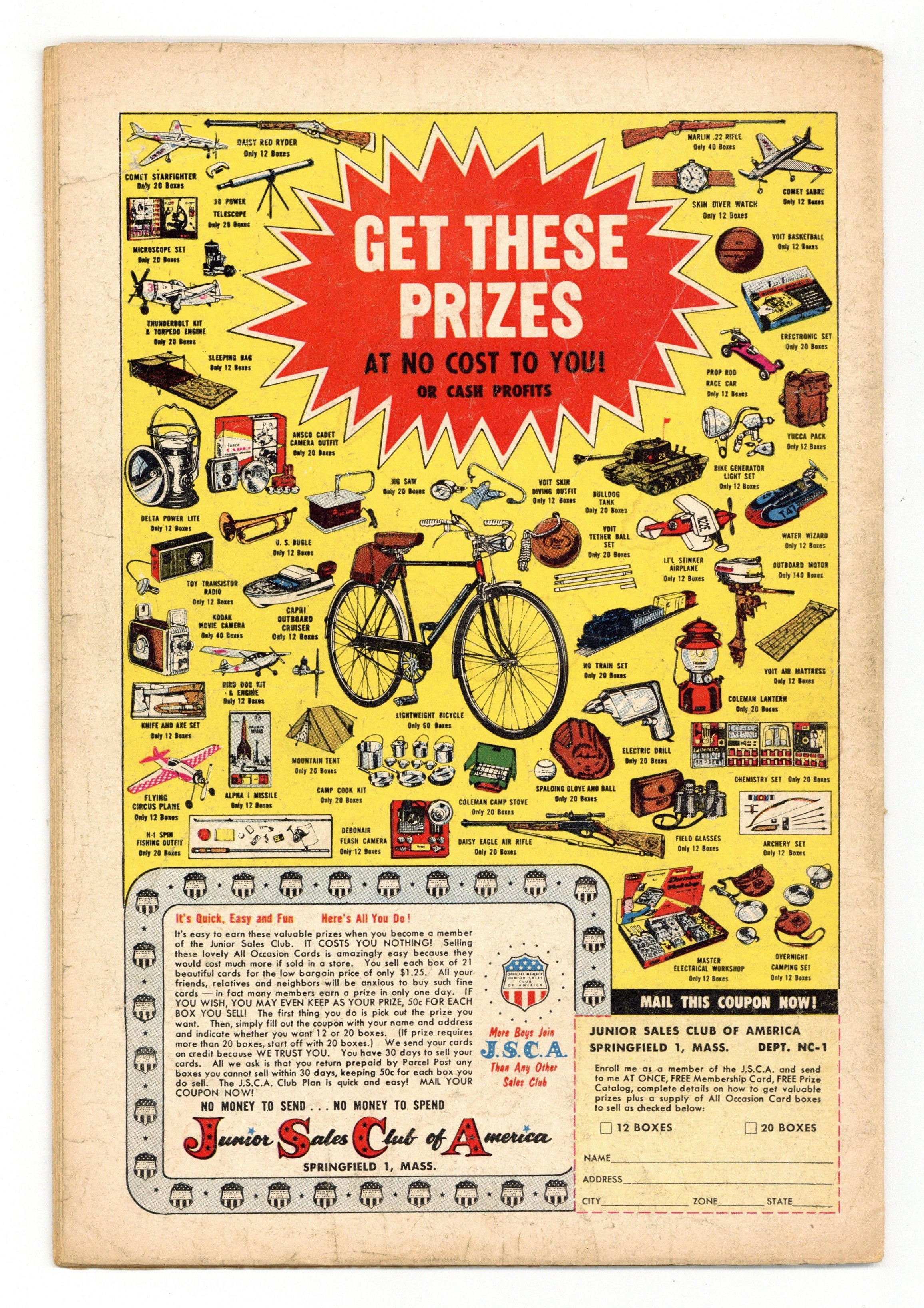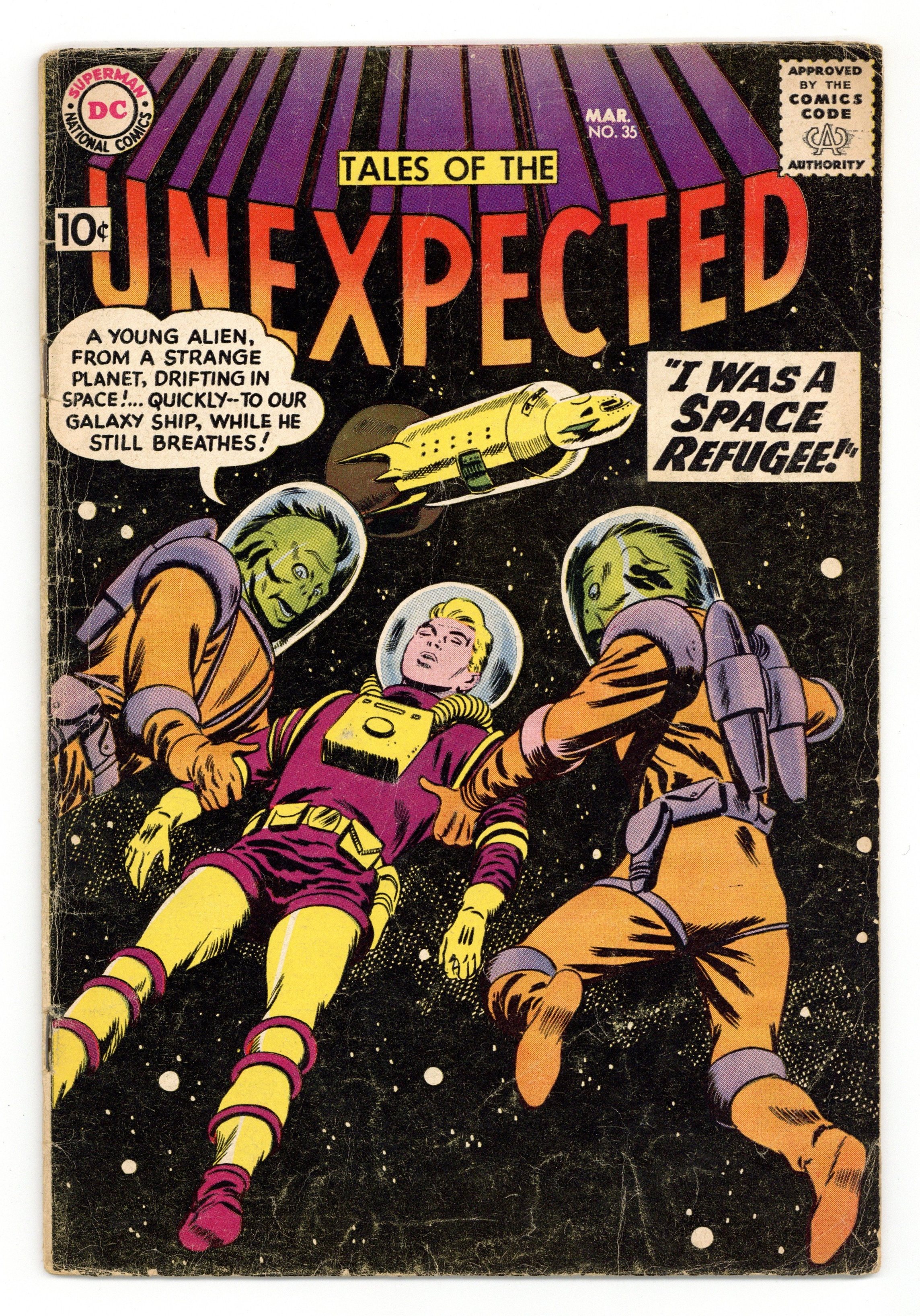 Cover art by Bob Brown. I Was A Space Refugee, art by Jim Mooney; aliens find an astronaut adrift in space. Curse of the Blankenships, script and art by Morris Waldinger. Doctor Rocket humor page by Henry Boltinoff. Boycott of Planet Earth, art by Mort Meskin. Professor Eureka, humor page by Henry Boltinoff. The Family Favorite! public service announcement, script by Jack Schiff, art by Bernard Baily. The Amazing Galactic Toys, art by Doug Wildey. 36 Pages, Full Color. Cover price $0.10.