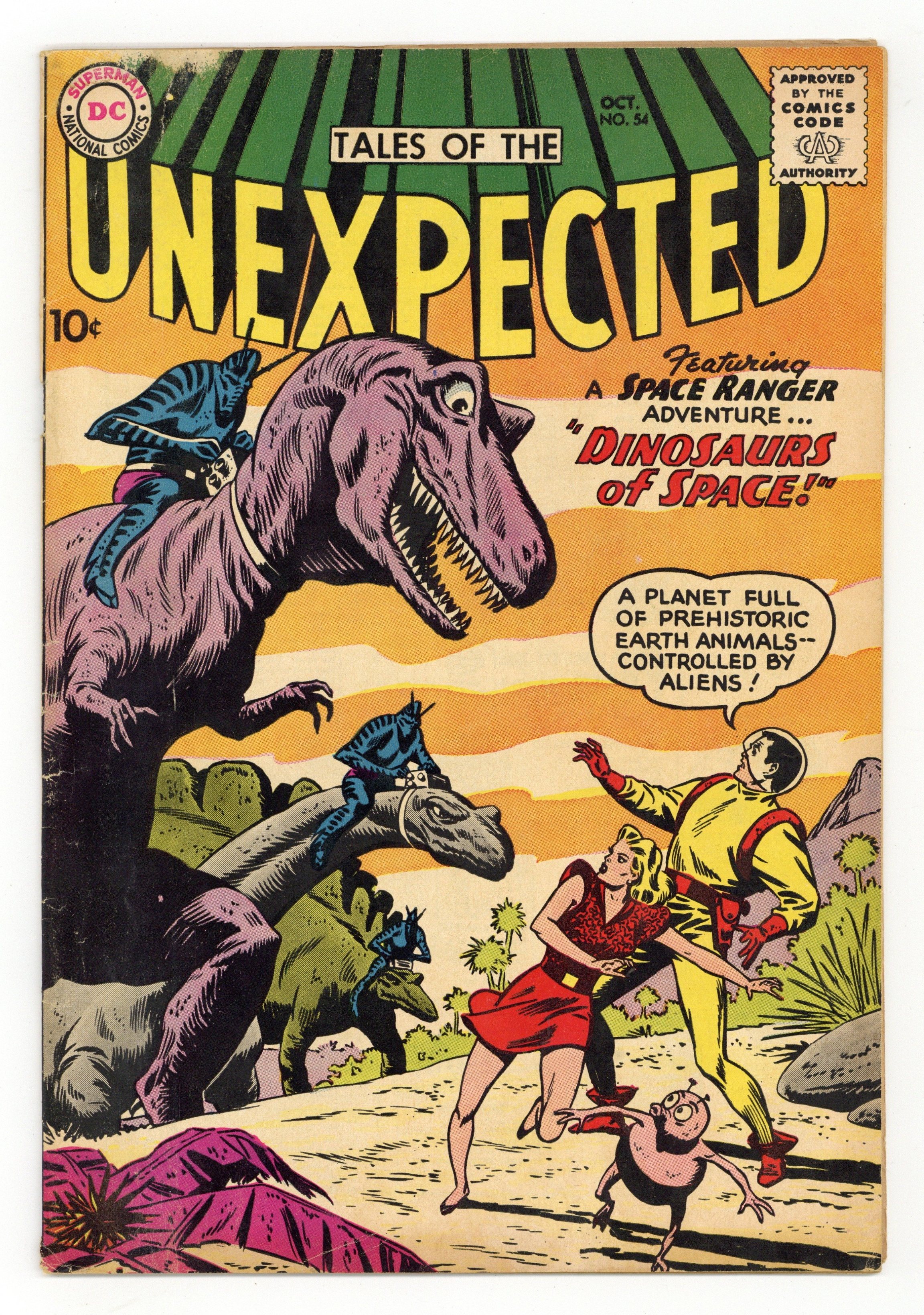 Cover art by Bob Brown. The Ugly Sleeper of Klanth, art by Howard Purcell. Captives of the Claw, art by Nick Cardy. The Dinosaurs of Space starring Space Ranger, script by Arnold Drake, art by Bob Brown; aliens control a planet filled with prehistoric creatures. 36 Pages, Full Color. Cover price $0.10.
