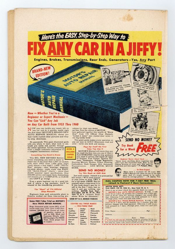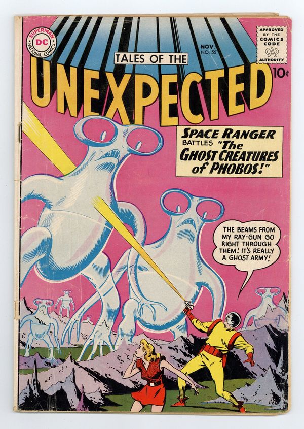 Cover art by Bob Brown. The Interplanetary Creature Trainer, art by Howard Purcell. Doctor Rocket humor page by Henry Boltinoff. Keep Learning -- the Key to Success! public service announcement, script by Jack Schiff, art by Bernard Baily. House ad for Justice League of America #1, art by Murphy Anderson. The Ghost Creatures of Phobos, art by Bob Brown; Space Ranger and his crew help a Martian film crew against ghostly monsters interrupting their movie shoot. Project Earth Hunt text story. The Planet of 1,000 Treasures, art by Nick Cardy. 36 Pages, Full Color. Cover price $0.10.