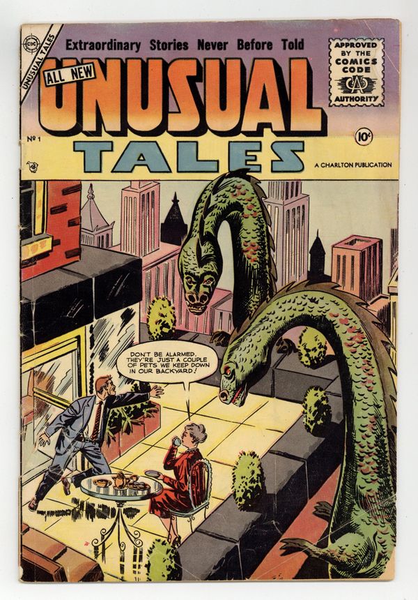 Cover by Vince Alascia. Stories and art by Dick Giordano, Bill Molno and Sal Trapani. Strange stories of science fiction, fantasy and horror that fit within the guidelines of the new Comics Code. A boxer packs a punch like an atom bomb - literally. A photographer fakes a prehistoric monster in an unexplored cave and convinces a scientist to take him on an expedition, but there really IS a prehistoric monster. Prospectors get into a gun battle over who owns a meteorite filled with diamonds, but none of them realizes the object is already inhabited. The Atom Bomber; La Caverna Del Pasado; Narzo the Coward; Grandma; Where the Road Ends; They Say It Really Happened; High Temperature. 32 pages, Full Color. Cover price $0.10.