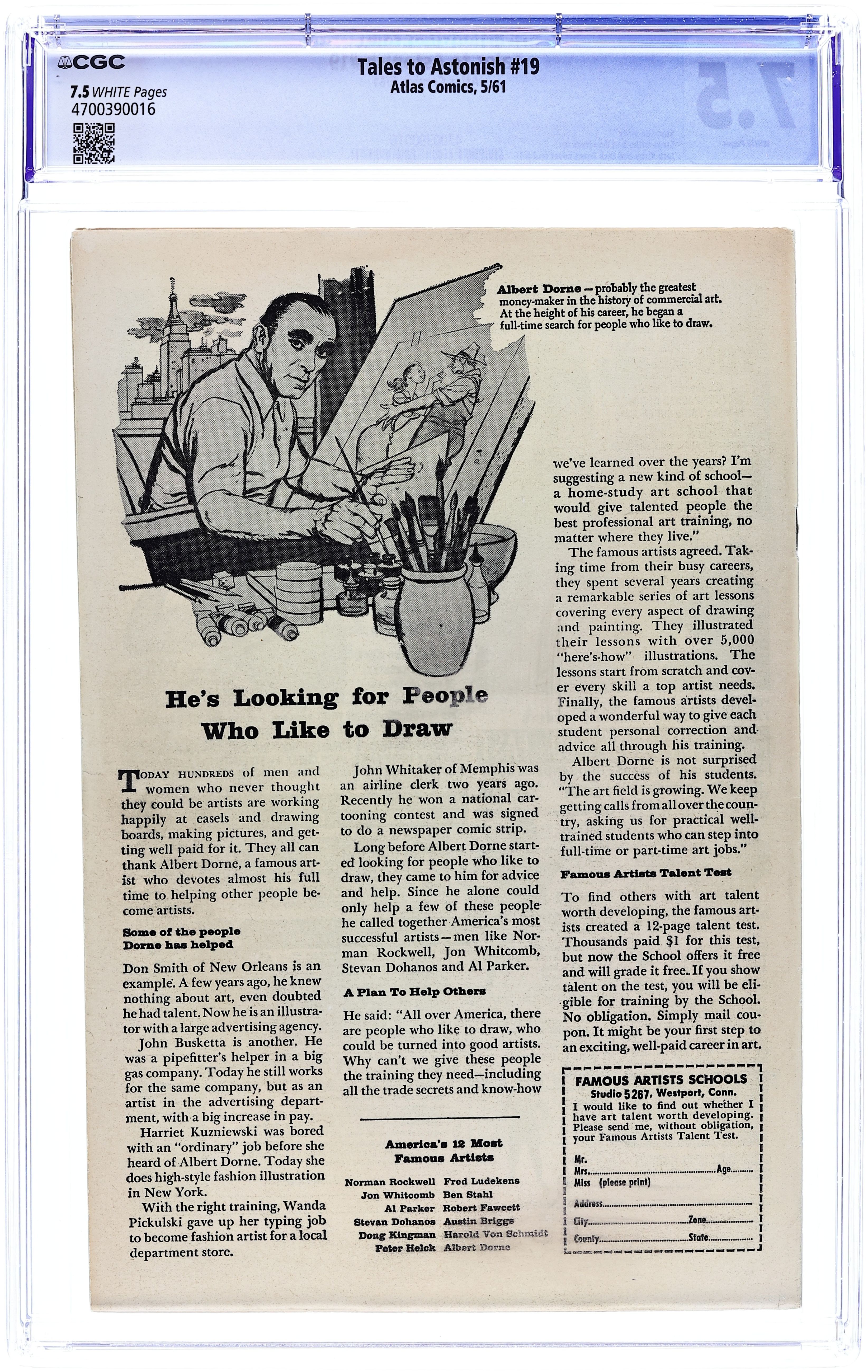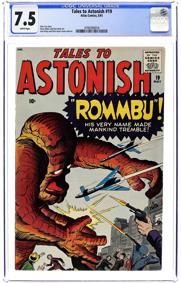 Cover by Jack Kirby and Dick Ayers. Rommbu! Part One, art by Jack Kirby and Dick Ayers; An escaped geologist convicted of armed robbery leads an alien invader to an active volcano in order to sacrifice himself to destroy the alien and protect the planet. Rommbu! Part Two, art by Jack Kirby and Dick Ayers. The Tree text story. The Thing with the Red Eyes, art by Don Heck; A gangster buys a pincushion doll that looks like his rival, and his reactions to pins stuck in it convince him that it works. The Terrible Trap!, art by Steve Ditko; A hunter with contempt for the animals he captures is captured by giant aliens and placed in a maze from which he can see a rocketship he could use to pilot his way home if only he could figure out how to escape the maze. 36 pgs., full color. $0.10. Cover price $0.10.