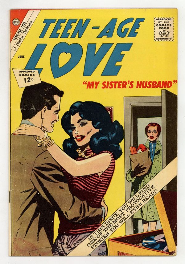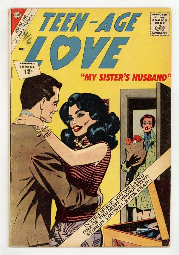 Cover by Joe Sinnott and Vince Colletta. Stories and art by Joe Sinnott and Vince Colletta. Charlton's long-running romance comic coincides with the blossoming of America's teen culture from the 1950s to the 1970s. Gina is shocked when she catches her husband dancing with her beautiful, flirty sister Dora, in a story with art (and cover) by future Fantastic Four legend Joe Sinnott. Backwoods beauty Lucille Anne wins a beauty contest and is courted by wealthy Jim, but it's country boy Lonnie who truly loves her. Redheaded Denise is used to getting attention for her beauty, but she doesn't understand why football star Chet treats her coldly. Queen of Heartbreak; Adulation; The Biggest Favor; My Sister's Husband. 32 pages, Full Color. Cover price $0.12.