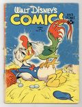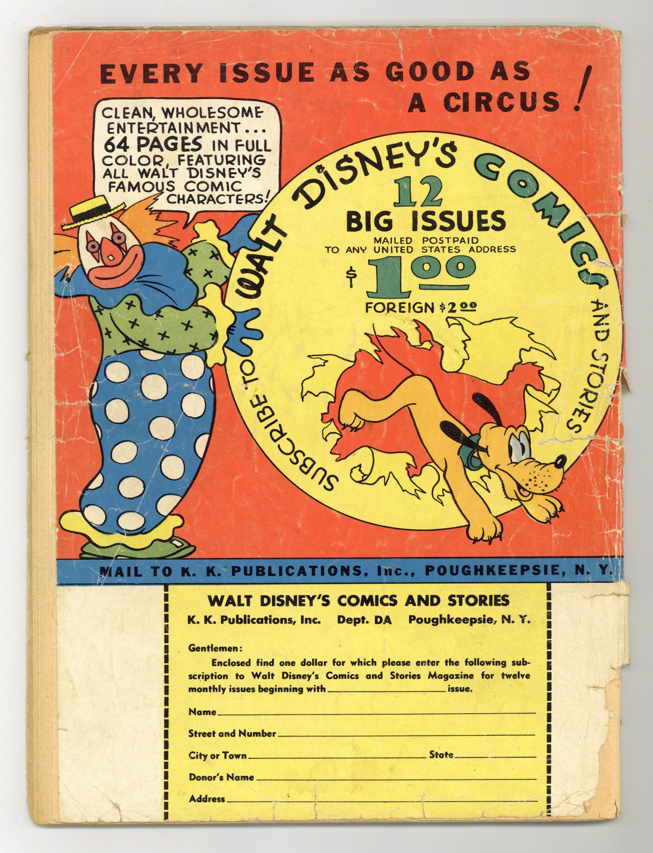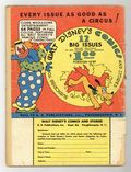 Cover by Al Taliaferro. Stories and art by Floyd Gottfredson, Ted Thwaites, Merrill De Maris, Bob Karp, Hubie Karp, Manuel Gonzales, Bill Wright, Bob Grant, and Al Taliaferro. Sometimes listed as Vol. 2, #7. The long-running vehicle for Disney character comics featured early work by Carl Barks, the legendary Good Duck Artist. In a classic Floyd Gottfredson story from the Mickey Mouse comic strip, Mickey finds a genie and has an Arabian Nights adventure. Donald crashes his car while selling insurance. On Penguin Isle, Peter and Polly Penguin find trouble with Wally the walrus and a shark. Double Feature; When It Rains It Pours; He Wants His Money's Worth; The Miracle Master; Too Many Daisies; No Luck; Sweet on Pluto; Join the Parade; Penguin Isle; The Twins Win; Goofy Goes to the Dogs; Too Realistic; Mickey Mouse Movies; A Born Scientist; On the Carpet; Donald Gets Drafted; A Friend in Need; A Bouncing Baby; Hollywood Chatter; Realization; Pluto Takes Off; Pluto Gets Outsmarted; The Wise Little Hen; One Man Crew; Monshure Insists; The Nephews Keep Pluggin'; The Sleepwalker; What, No Rubbers!; They Can't Gyp Goofy; Poor Sport; The Pound of Cure. 64 pages, Full Color. Cover price $0.10.