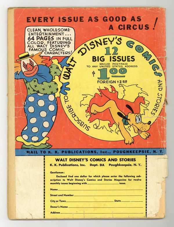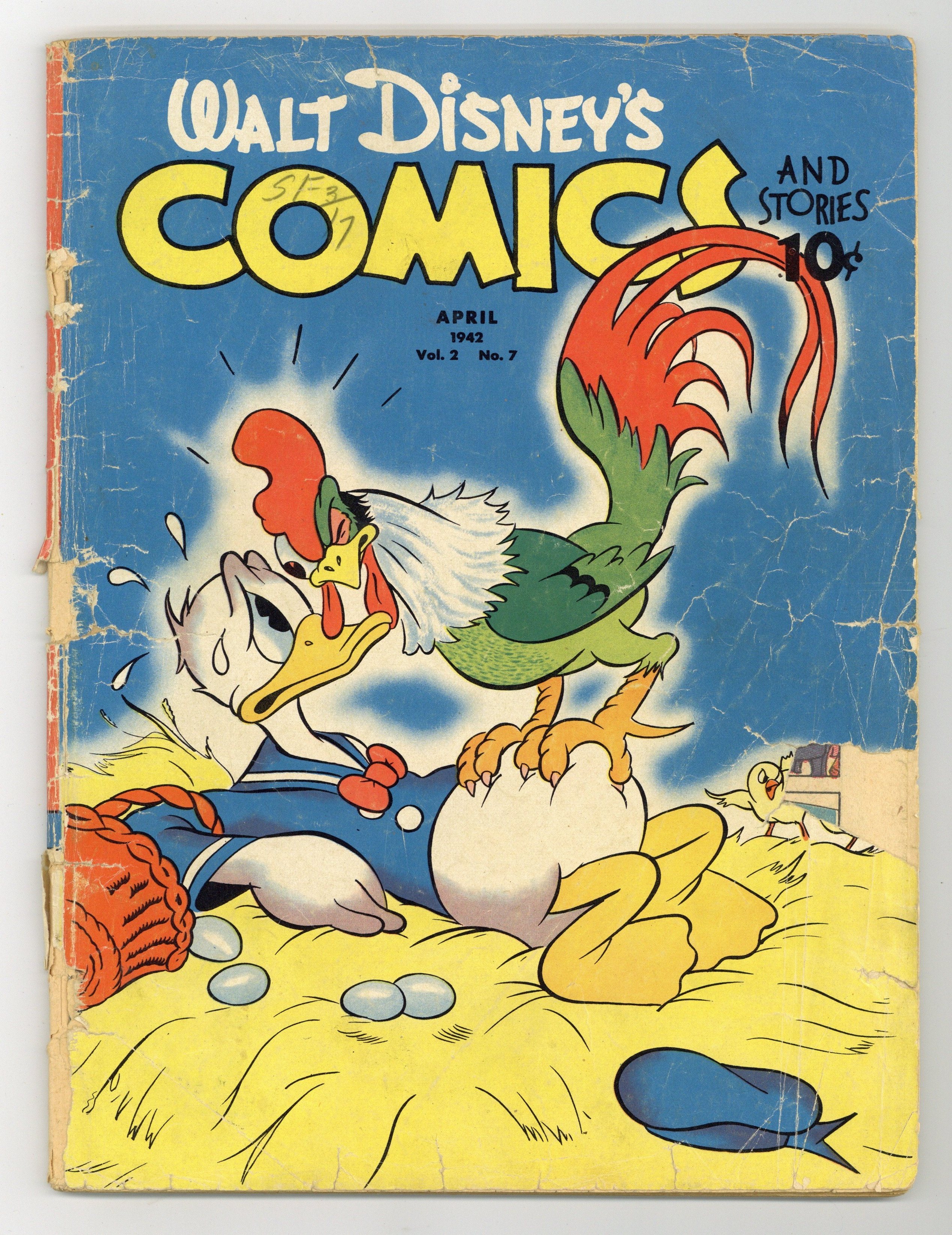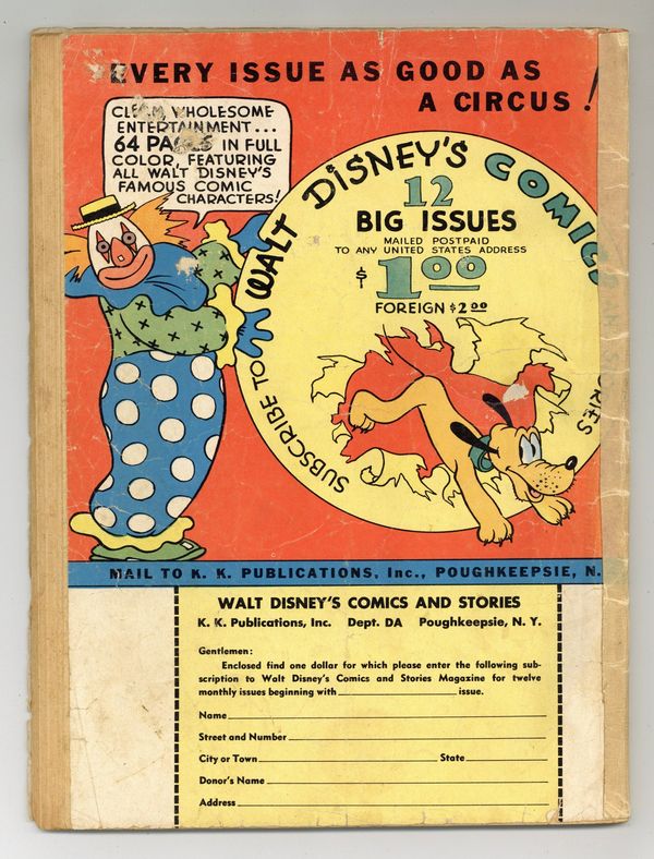 Tags: Disney Ducks & MicePublished Apr 1942 by Dell/Gold Key.$145.00- Tape along spine and on staples. Cover and first wrap detached.