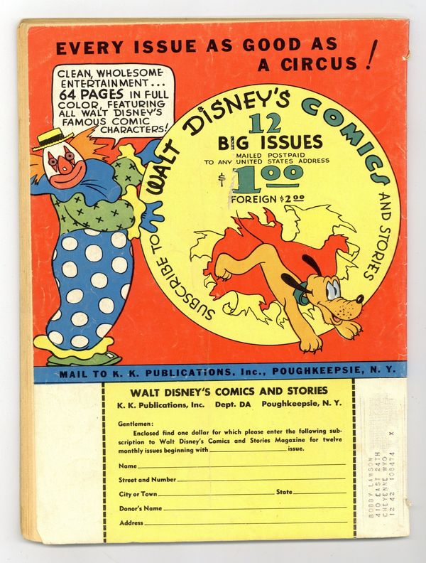 Tags: Disney Ducks & MicePublished Apr 1942 by Dell/Gold Key.$130.00- Tape along spine and on staples. Cover and first wrap detached.