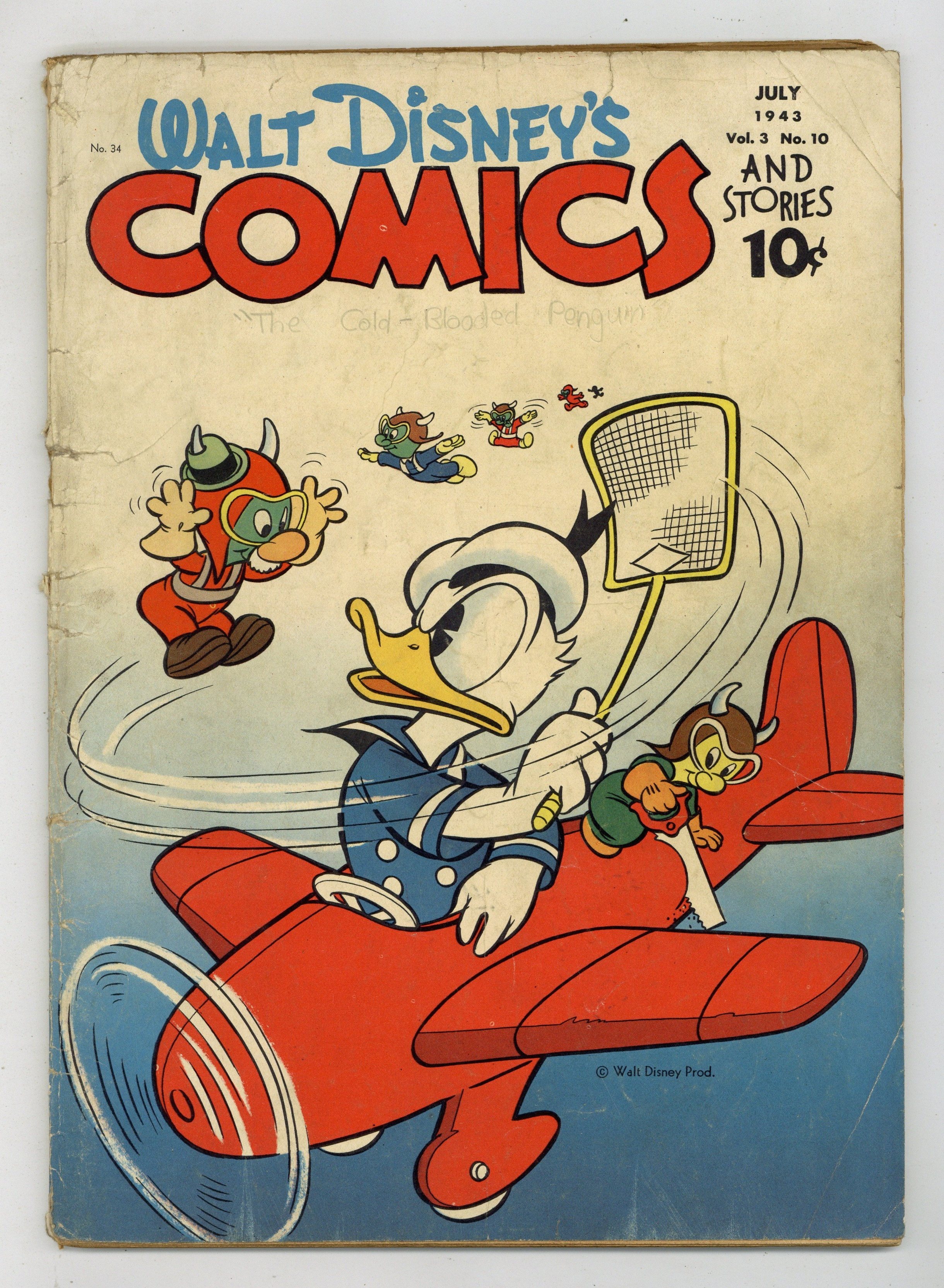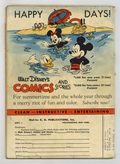 Cover by Walt Kelly. Stories and art by Walt Kelly, Carl Barks, Floyd Gottfredson, Ted Thwaites, Merrill De Maris, Bob Karp, Bob Wright, and Al Taliaferro. Sometimes listed as Vol. 3 #10. The long-running vehicle for Disney character comics featured early work by Carl Barks, the legendary Good Duck Artist. In a classic Floyd Gottfredson story from the Mickey Mouse comic strip, hotel detective Mickey investigates ghosts in the haunted hotel. In a story by Barks featuring the first appearance of Donald's rival-next-door Neighbor Jones, Donald tries to out-do him in doing good deeds. Walt Kelly contributes the first of many Gremlin stories, including a paper doll of Gremlin Gus. Gremlins cover by Kelly. Clara Cluck; New-Fangled Fountains; The Twins Fix Everything; The Skeptic; How To Play Golf; Unhorsed; Duck!; Possum; Surrounded; Gremlin Gus and the Widgets; Mickey Mouse, Bellhop Detective; Hollywood Chatter; The Unknown; Convincing Evidence; Roundabout Revenge; No Eggs; Peace and Quiet; A Modern Invention; Duckmobile; Mental Picture; Fourth of July Fun; Trolley Car Troubles; Love Daisy, Love Her Dog; Heads Down!; Common Knowledge; The Price of Popularity; Quick Turnover; X Marks the Spot; Only God Can Make a Tree; Better Bizzness Expert; The Cold-Blooded Penguin; The Loser; Fun on a Rainy Day; It's a Lye!. 64 pages, Full Color. Cover price $0.10.