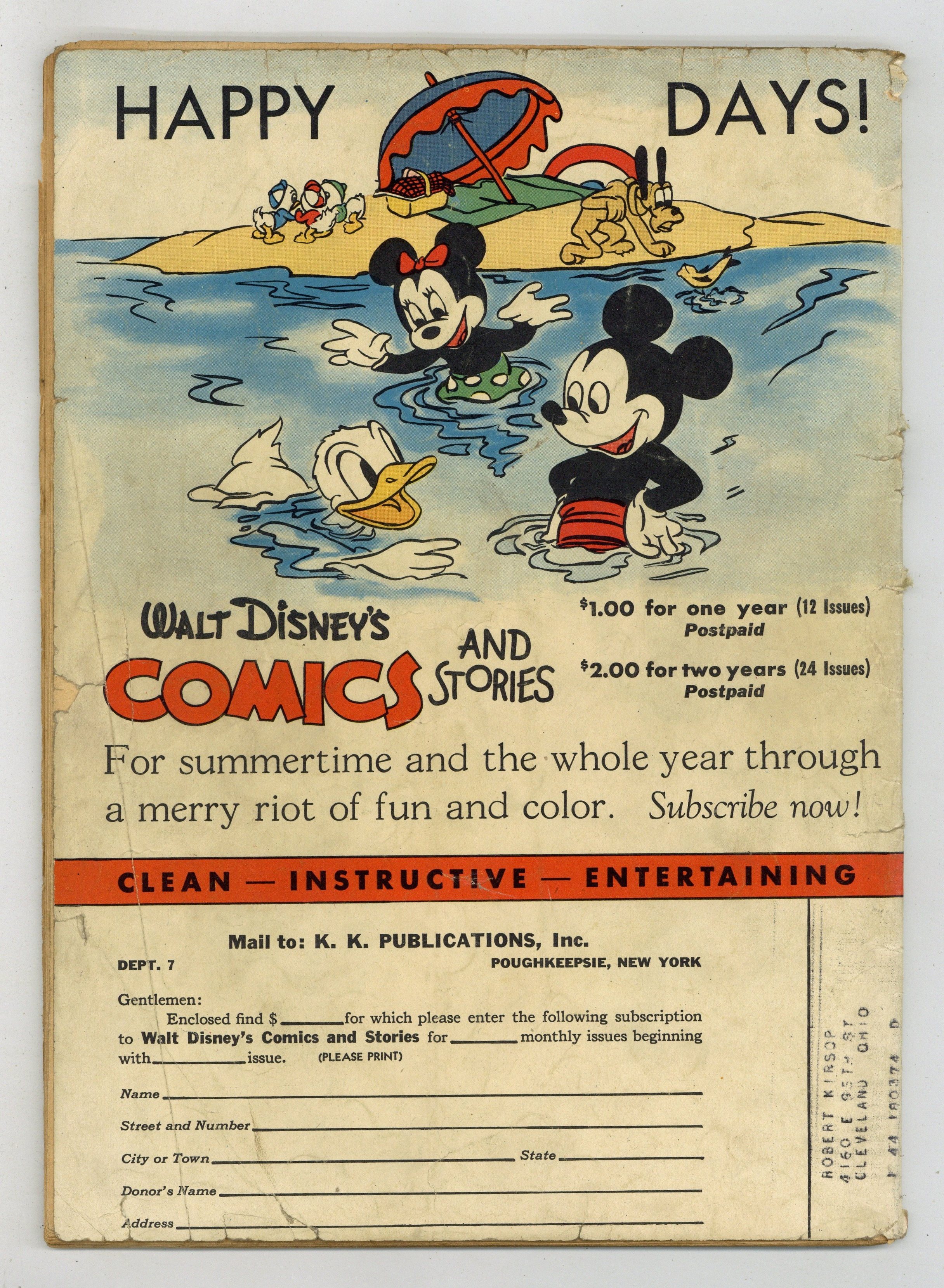 Tags: Disney Ducks & MicePublished Jul 1943 by Dell/Gold Key.$125.00- Cover and centerfold detached at single staple.
