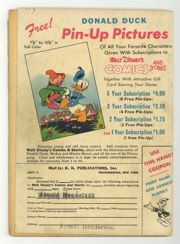Tags: Disney Ducks & MicePublished Aug 1946 by Dell/Gold Key.$45.00- Cover oxidation. Interior tearing.