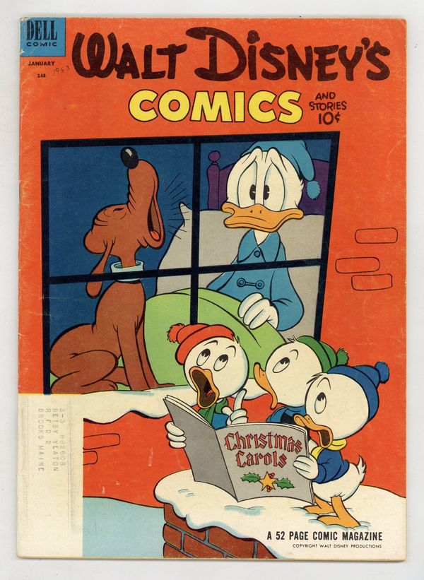Cover by Carl Barks. Stories and art by Carl Barks, Merrill De Maris, Bill Wright, Tony Strobl, Manuel Gonzales, Bob Karp, Don Christensen, Frank McSavage, Gil Turner, Lee Hooper, and Al Taliaferro. Sometimes listed as Vol. 13 #4. The long-running vehicle for Disney character comics featured art by Carl Barks, the legendary Good Duck Artist. The genie takes Mickey to an Arabian country. In a story by Barks, Donald tries to trick Uncle Scrooge out of a Christmas dinner by impersonating a South American oil tycoon. Pluto sneaks into the opera to fulfill his dreams of singing on stage. Donald Duck; Li'l Bad Wolf; Pluto; Little Hiawatha; Dumbos Christmas Gift; Grandma Duck; Mickey Mouse: The Miracle Master. 48 pages, Full Color. Cover price $0.10.