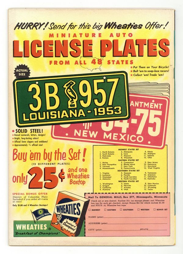 Cover by Carl Barks. Stories and art by Carl Barks, Carl Fallberg, Bill Walsh, Paul Murry, Manuel Gonzales, Bob Karp, Don Christensen, Frank McSavage, Gil Turner, Lee Hooper, and Al Taliaferro. Sometimes listed as Vol. 13 #9. The long-running vehicle for Disney character comics featured art by Carl Barks, the legendary Good Duck Artist. Mickey discovers that the resort is being hassled by shadowy developers who have discovered uranium on the land. In a story by Barks, Gyro Gearloose develops super fishing-worms that do all the work. The Big Bad Wolf poses as the head of a school to trick the Three Little Pigs. Donald Duck; Li'l Bad Wolf; Pluto; Little Hiawatha; The Spring Bazaar; Grandma Duck; Mickey Mouse: The Last Resort. 48 pages, Full Color. Cover price $0.10.