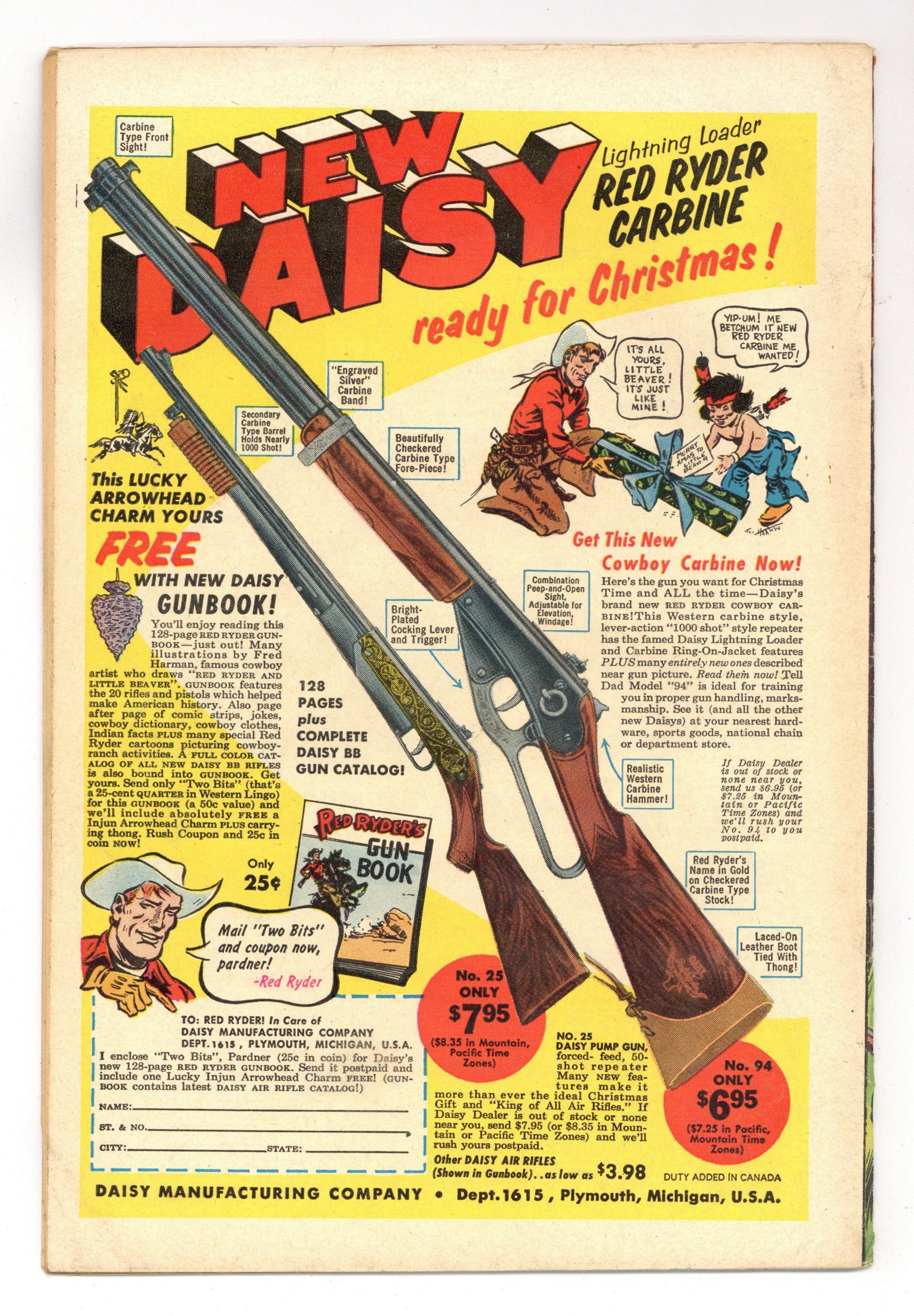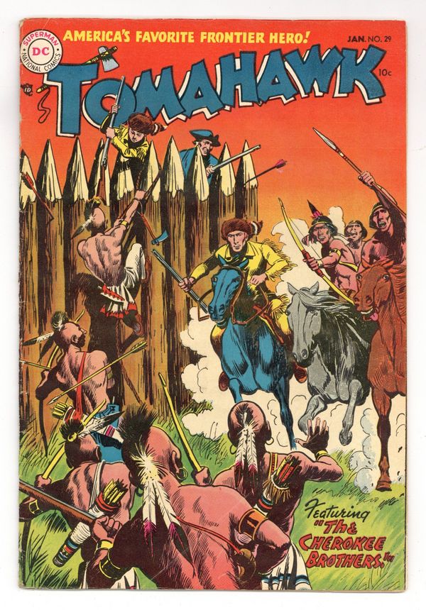 $57.00Cover art by Fred Ray. The Conspiracy of Wounded Bear starring Tomahawk, art by Fred Ray. The Strong Man of Stag Falls, art by Fred Ray. The White Indian Chief, script by Gardner Fox, art by Frank Frazetta. The Cherokee Brothers starring Tomahawk, pencils by Bruno Premiani, inks by Ray Burnley. 36 Pages, Full Color. Cover price $0.10.