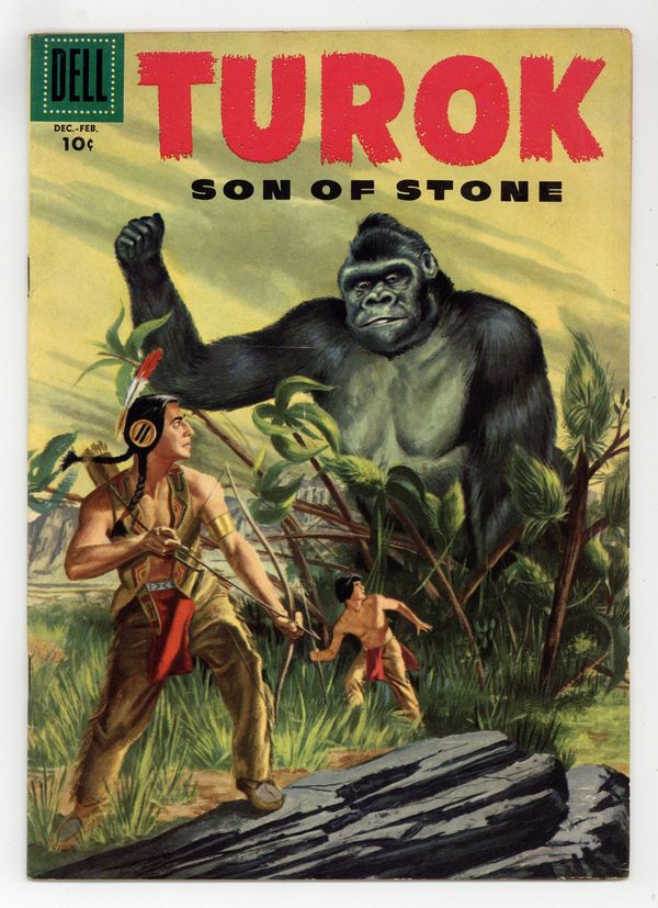 Written by Gaylord Du Bois. Art by Bob Correa and unknown. Turok and Andar in "The Giant Ape" and "The Stick Thrower" by Gaylord Du Bois and Bob Correa. Plus: Lotor the Raccoon in an untitled back-up story by Du Bois and unknown. Also: "Turok's Lost Valley" illustration by Giusto; 1-page text story "Aknet Becomes a Man"; and 1-page article "Prehistoric Men." 36 pages, full color. Cover price $0.10.