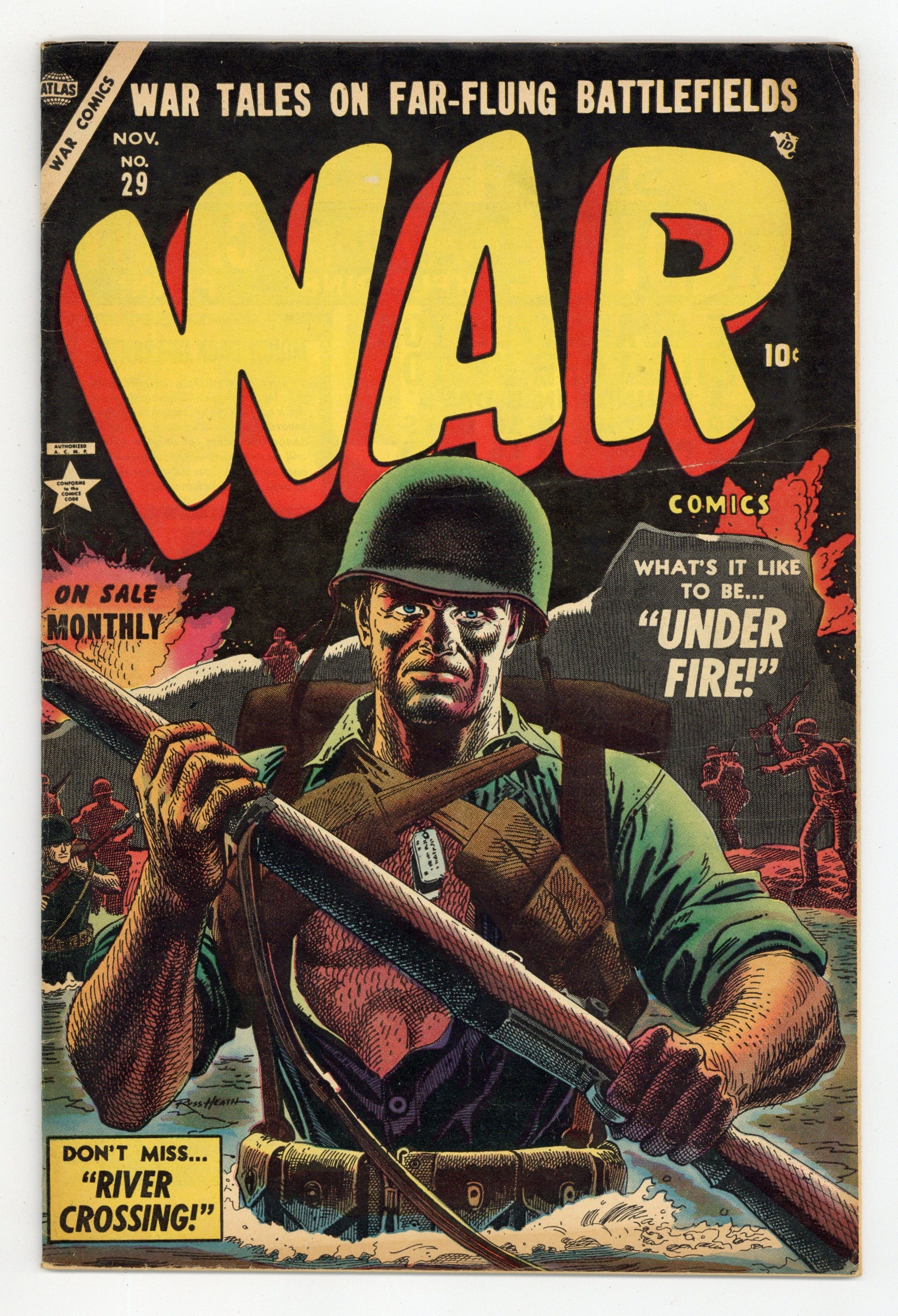 "Under Fire" (art by John Romita Sr.), "The Navy That Wasn't" (art by Joe Sinnott), "Last of the Seminoles" (art by Mort Leav), "River Crossing," and a two-page text story, "Battle Music." Russ Heath cover. Cover price $0.10.
