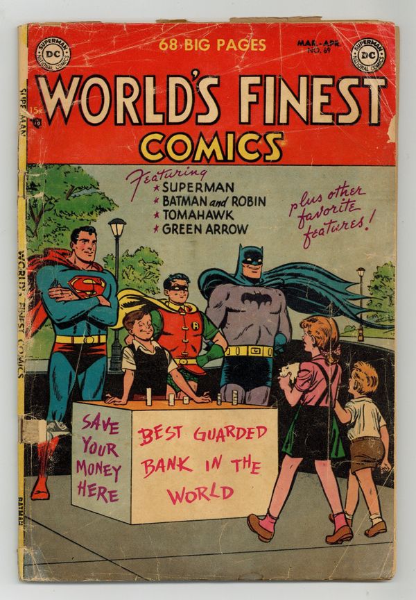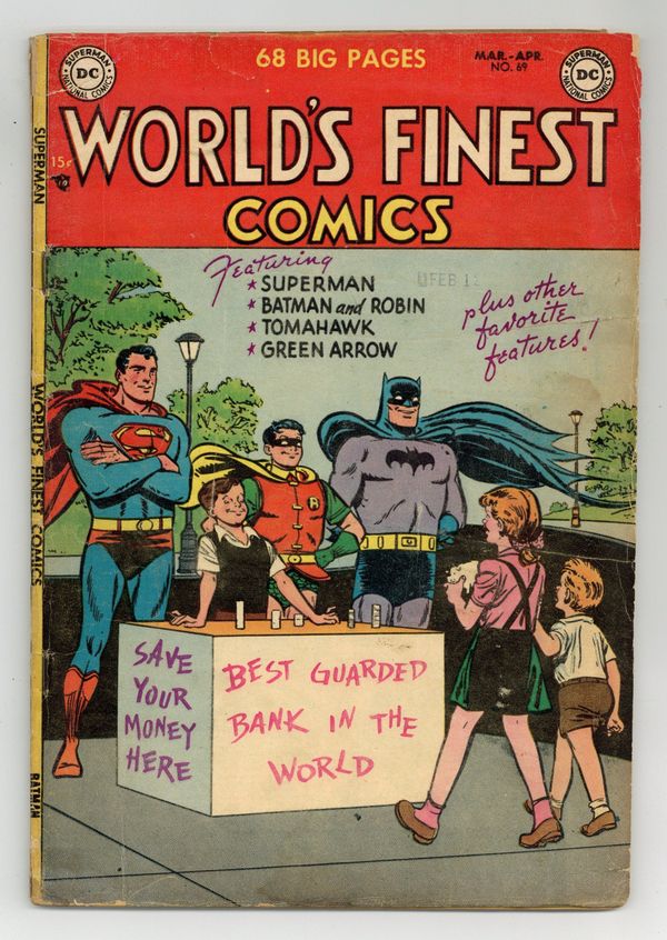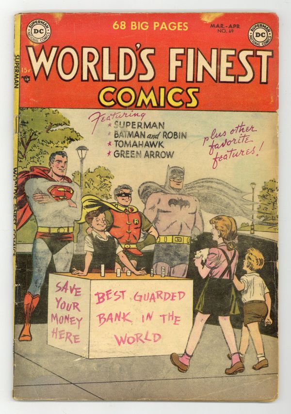 Cover art by Winslow Mortimer. Jor-El's Last Will starring Superman, pencils by Wayne Boring, inks by Stan Kaye; Jor-El's last will shows that Earth is doomed to explode like Krypton did; The location of Superman's secret mountain retreat is discovered by the world. Shorty humor page by Henry Boltinoff. The Junior Ghost Patrol starring Tomahawk, script by Dave Wood, art by Nick Cardy. The Matador with a Bow starring Green Arrow, art by George Papp. Sudden Death Valley starring Two-Gun Percy, art by Jimmy Thompson. The Seven Hills of Rome featuring Danger Trail, script by Dave Wood. Amazing Creatures of the Amazon text article by Jack Miller [as Jack Mabley]. Start the Day Off Right public service announcement starring Buzzy, script by Jack Schiff, art by Win Mortimer. The Man Who Wanted to Die With Batman, pencils by Bob Kane (Batman & Robin figures) and Lew Sayre Schwartz, inks by Stan Kaye; A dying man vows to take Batman with him, because Batman sent his father to the electric chair. 68 Pages, Full Color. Cover price $0.15.