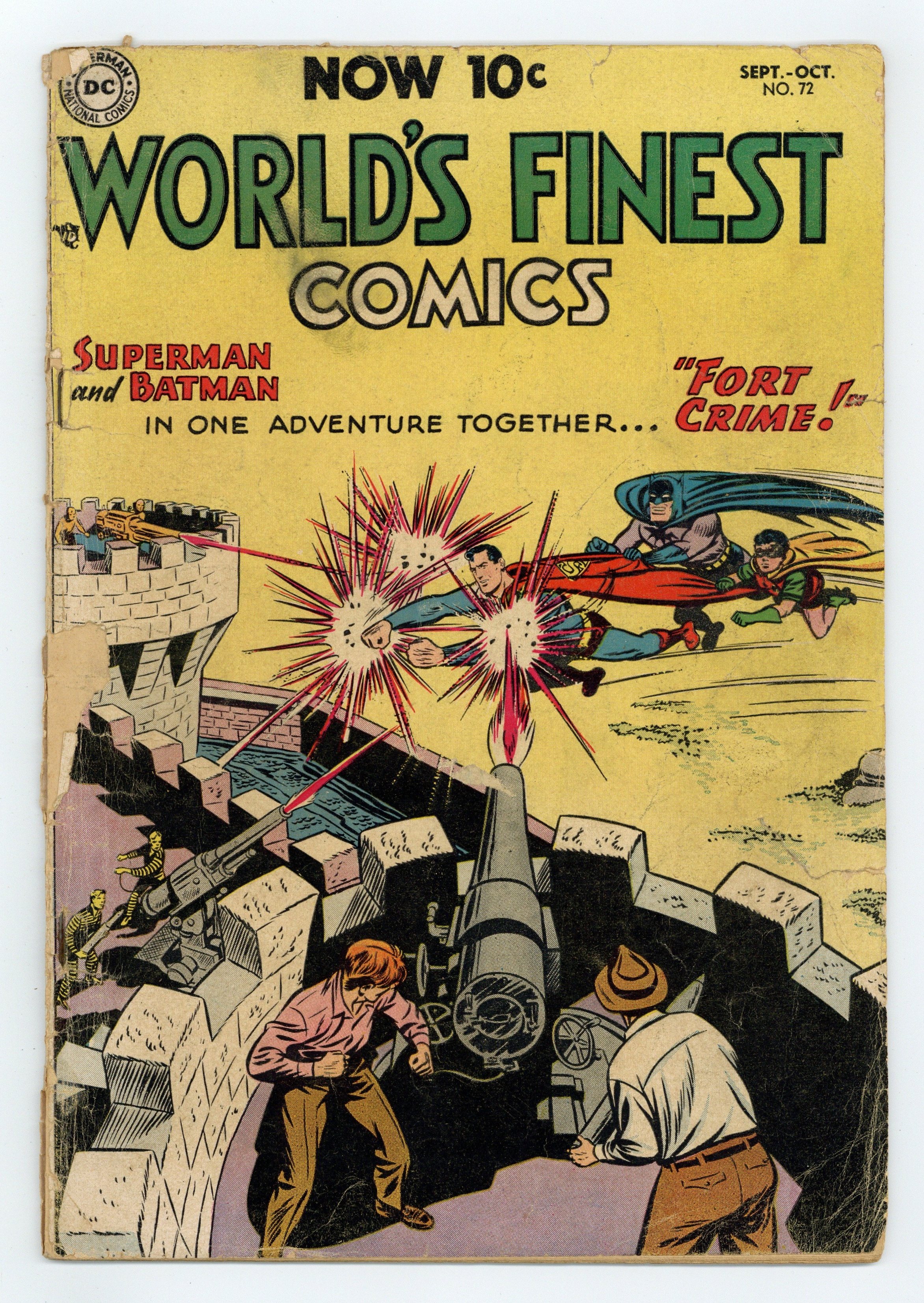 Cover pencils by Curt Swan, inks by Stan Kaye. Work Can Be Fun public service announcement by Buzzy, script by Jack Schiff, art by Win Mortimer. Fort Crime starring Superman and Batman, script by Alvin Schwartz, pencils by Curt Swan, inks by Stan Kaye; Superman and Batman must find out who has been supplying weapons to the Heavy-Weapons Gang. Wayne Boring Superman image incorporated into a puzzle page. The Flying Archers starring Green Arrow, script by Ed Herron, art by George Papp; When Oliver sprains his ankle, Green Arrow takes to the air. The Talons of Terror starring Tomahawk, script by Ed Herron, art by Nick Cardy. 36 Pages, Full Color. Cover price $0.10.
