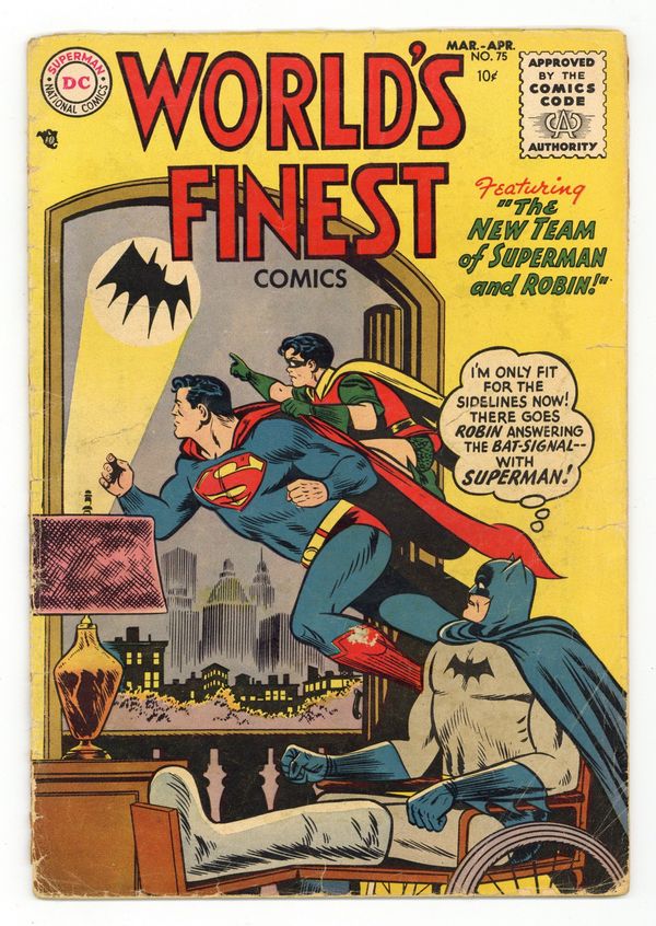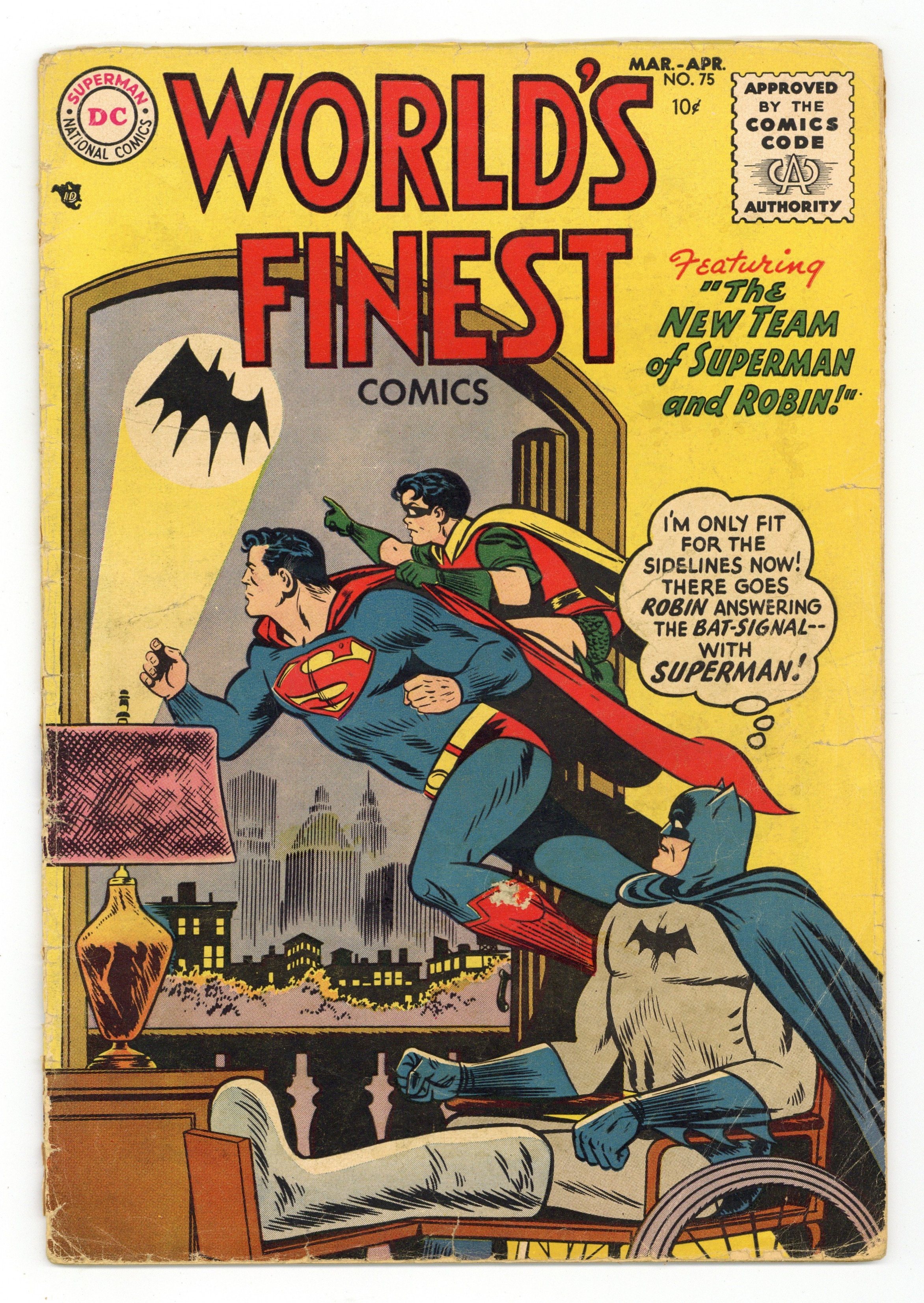 Cover pencils by Curt Swan, inks by Ray Burnley. The New Team of Superman and Robin starring Superman and Batman, script by Bill Finger, pencils by Curt Swan, inks by Stan Kaye; When Batman is laid up with a broken leg, Superman comes to Gotham City to help Robin track down the Purple Mask Mob, but it's Batman who cracks the case. The World's Most Famous Arrows starring Green Arrow, art by George Papp. The Battle of the Medicine Men starring Tomahawk, pencils by Bruno Premiani, inks by Ray Burnley; To avoid war, Tomahawk challenges Walking Otter to a magic battle. 36 Pages, Full Color. Cover price $0.10.