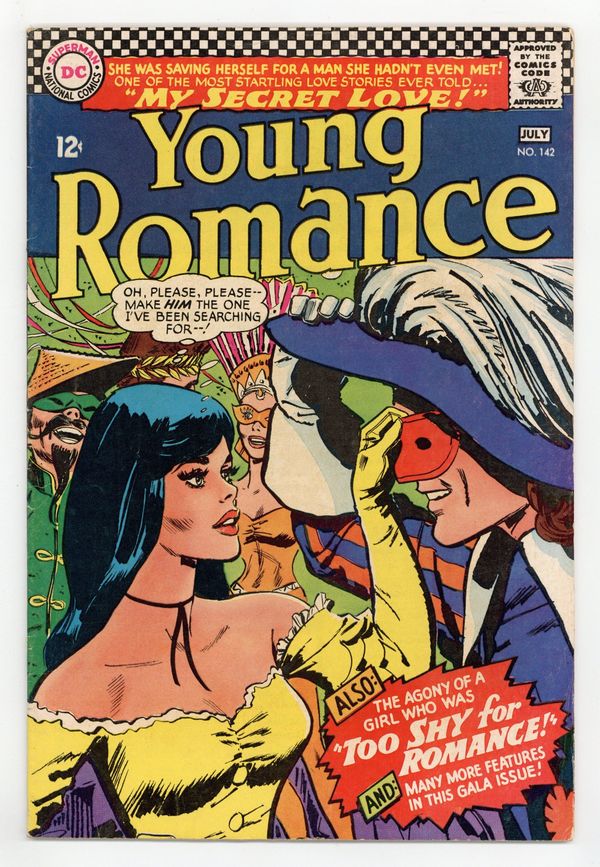 Cover pencils by Jay Scott Pike. Stories by unknown. Art by Gene Colan, Jay Scott Pike, Bernard Sachs? and unknown. Tina is painfully shy and unable to talk to boys even when they show some interest in her. She begins to believe that she will be alone forever until she meets a boy who is just as shy as she is in "Too Shy for Romance!" Plus: A girl fantasizes about falling in love with every handsome man she sees, and eventually it happens for real in "My Secret Love"! Also: Makeup tips in 1-page You Can Be Beautiful article "Nobody Is Perfect -- But You Can Be!" And: Laura Penn...Your Romance Reporter letters page. 32 pages, full color. Cover price $0.12.