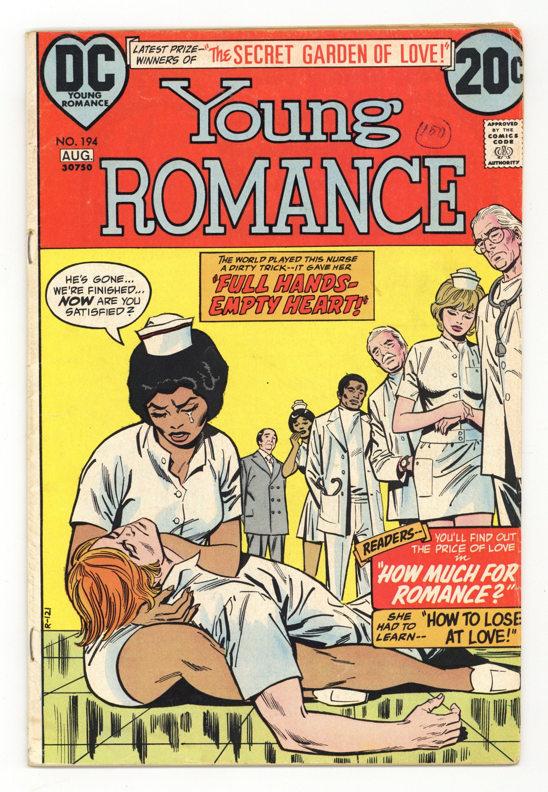 Stories by Robert Kanigher, George Kashdan and unknown. Art by John Rosenberger & Frank Giacoia, Gerry Talaoc? (as Gerry Talac) and unknown. The world played this nurse a dirty trick -- it gave her..."Full Hands Empty Heart"! Plus: She had to learn..."How To Lose At Love"! Also: You'll find out the price of love in..."How Much For Romance"! And: 1-page "Going Steady" cartoon by Mort Drucker! Plus: 1-page "Teen-Age" cartoon; poetry in 1-page "Secret Garden of Love"; and Romance In Fashion 1-pagers "[A Sporting Look...]" and "[Rain...Rain...Go Away]"! 32 pages, full color. Cover price $0.20.