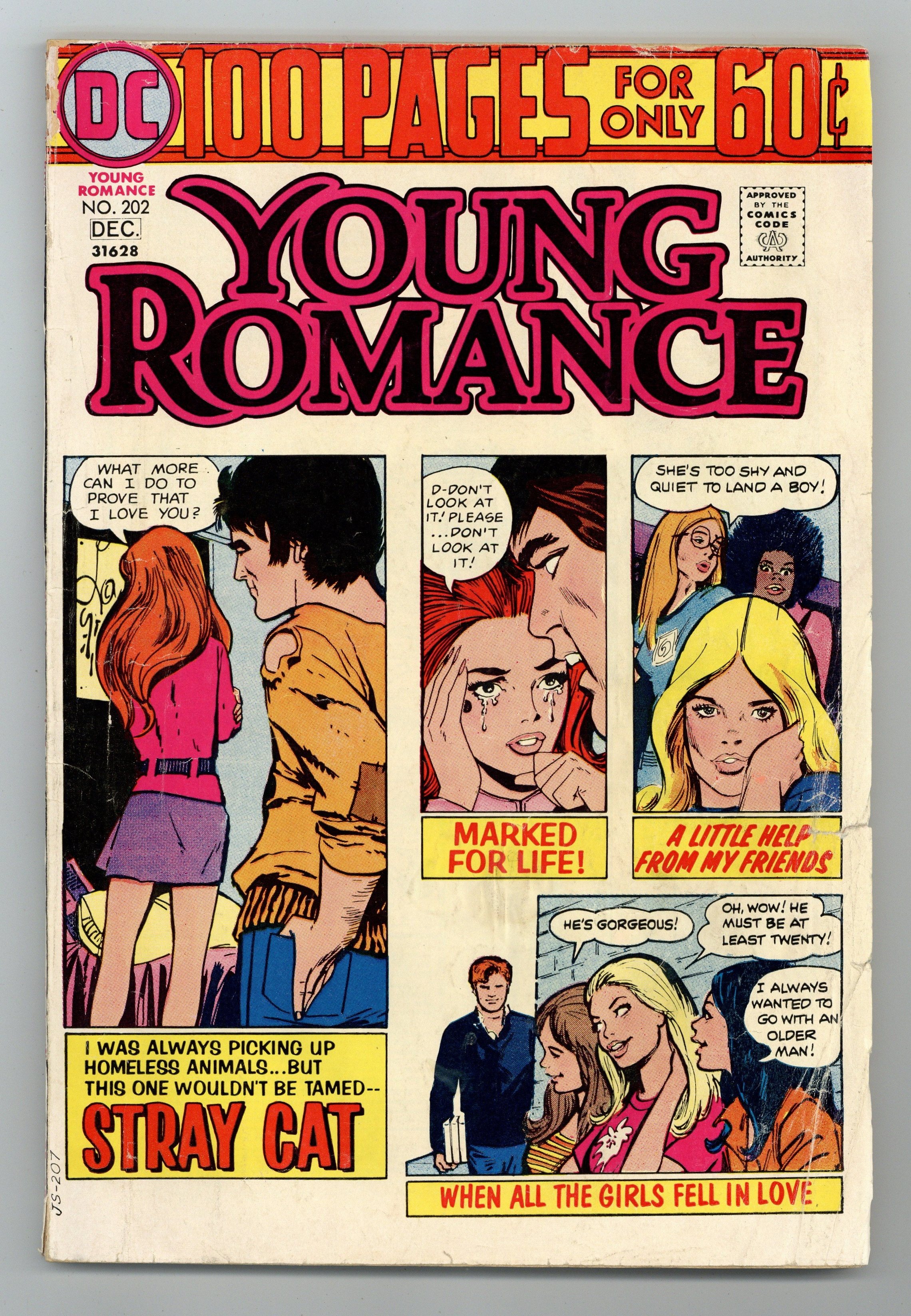 Stories by unknown. Art by Jerry Grandenetti, Win Mortimer, Jay Scott Pike?, John Rosenberger, Creig Flessel?, Jack Abel, Vince Colletta, Bernard Sachs and unknown. Nick comes into the library where Sarah works every night to study, but both are too shy to make the next move until Sarah's friends plot to make something happen in "With a Little Help from My Friends"! Plus: Three girls try different ways of attracting Kevin, the new guy, but a chance encounter gives Phyllis the advantage in "All the Girls Fell in Love!" Also: Sue comes up with a plan to casually meet the handsome new guy in her building in "Make Him Come to You!" And: Paul -- the Other Side! advice column. Plus: Retitled reprint stories "Easier to Forget," "I'll Take Care of You," "Marked for Life!", "Manchaser," "Mismatch," "Just Another Groupie," "Stray Cat" and "Don't Treat Me Like the Others"! Softcover, 96 pages, full color. Cover price $0.60.