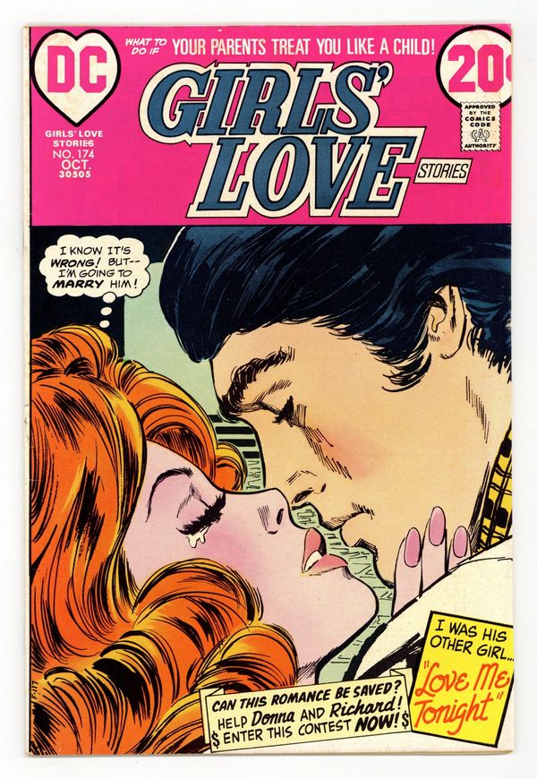 Featuring: 9 page story "Runaway Girl" pencilled by Jay Scott Pike; 1 page text article "Can This Romance Be Saved?"; 3 page story "Too Teeny Weeny to Love" pencilled by Jay Scott Pike; 1 page text article "What to Do if Your Parents Treat You Like a Child"; 8 page story "Love Me Tonight" pencilled by Gene Colan; 4 page story "Love that Lemon" pencilled by Tony Abruzzo; 1 page From Barbara Miles, with Love letters page. Cover pencils by John Rosenberger. Cover price $0.20.