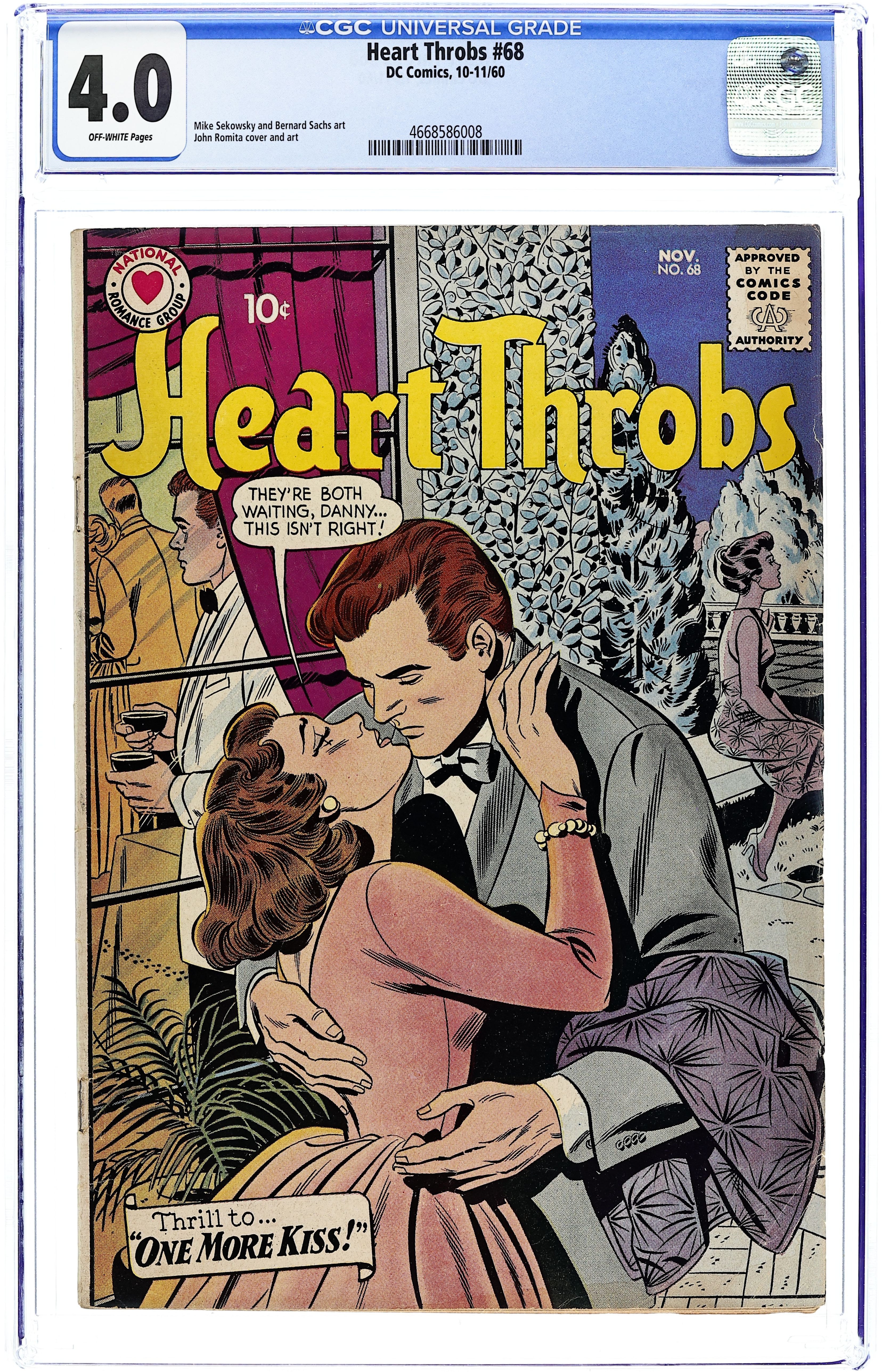 Cover pencils by John Romita, Sr. Stories by unknown. Art by Mike Sekowsky & Bernard Sachs and unknown. Featuring: "The Truth about Tony"; "A Smile for Someone"; "New Love for Old"; and "One More Kiss"! Plus: 2-page text article "Romance in Other Places"! 32 pages, full color. Cover price $0.10.