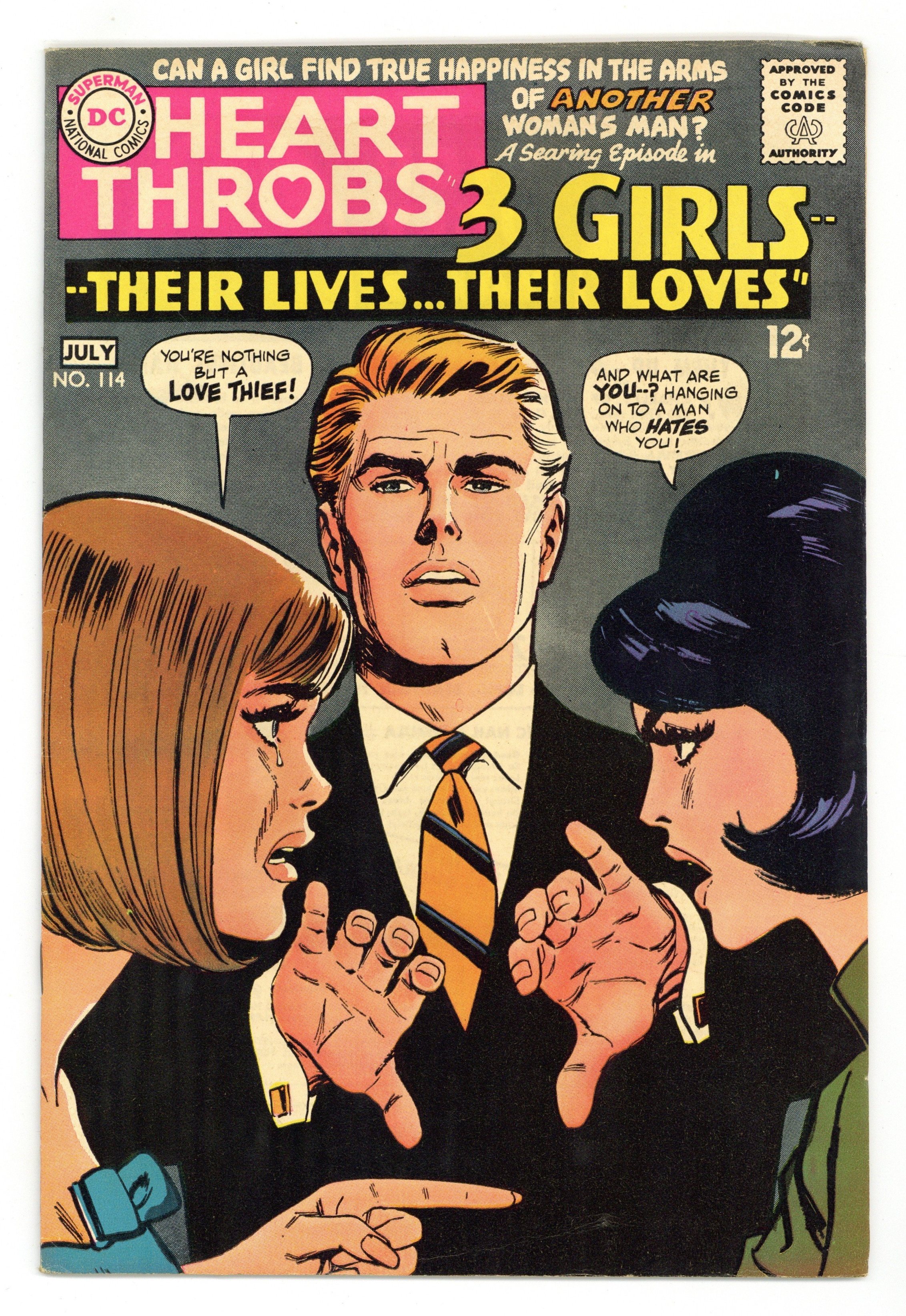 Cover by Jay Scott Pike. Stories by Barbara Friedlander. Art by Jay Scott Pike and unknown. Can a girl find true happiness in the arms of another woman's man? Find out in Episode 13 of "3 Girls--Their Lives--Their Loves"! Also featuring "No More Love for Jenny" and "One Chance at Love"! Plus: 2-page Mad Mad Modes for Moderns filler! And: Poetry by Mary Jones, Mary Beth Brown and Helen Larue Smith. 32 pages, full color. Cover price $0.12.