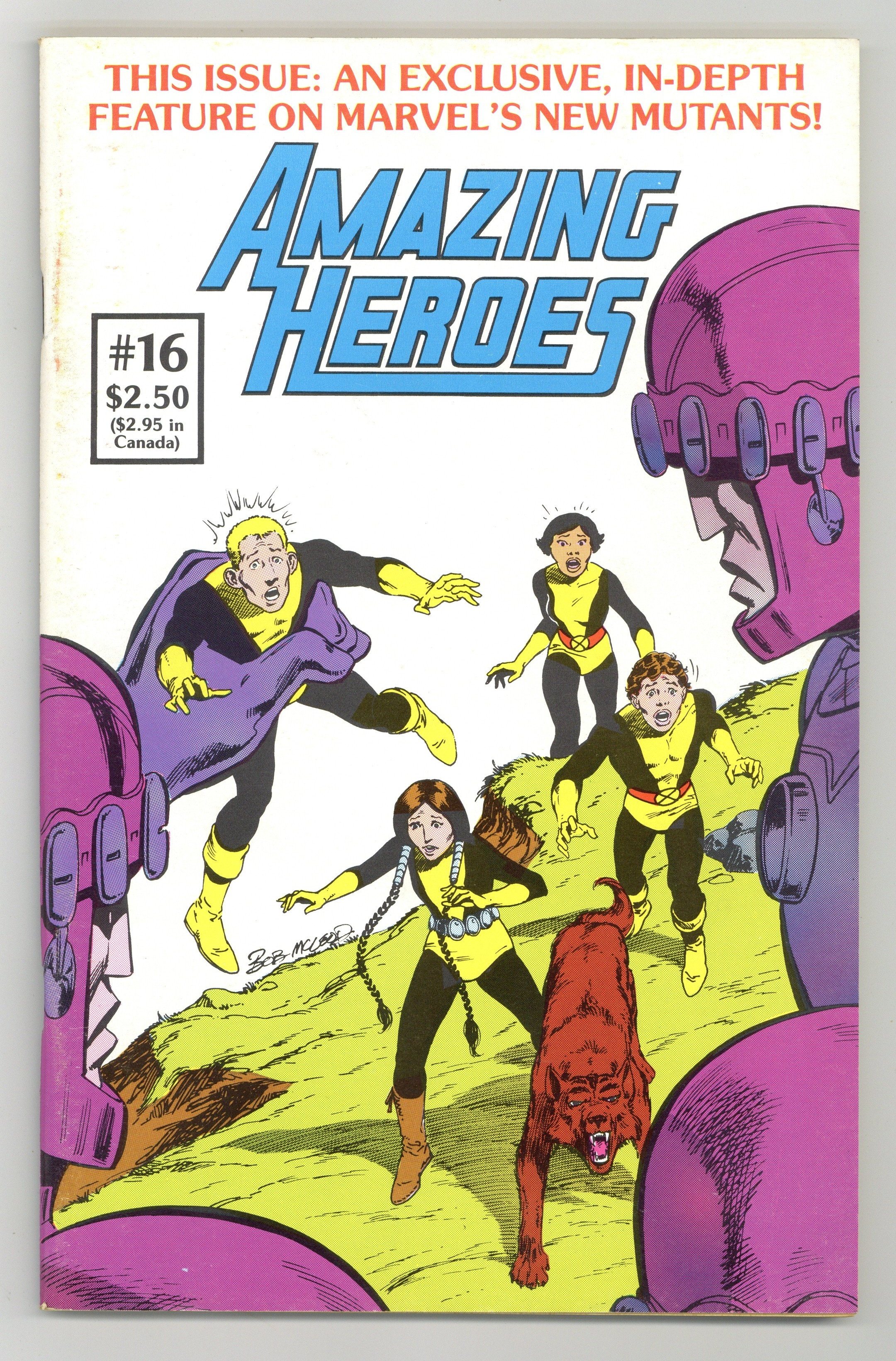 In this issue: New Mutants in-depth preview (predates first appearance in Marvel Graphic Novel); Chris Claremont interview; Green Arrow - who is this masked archer really?; Namor Rex - a historical and sociological look at Prince Namor's undersea kingdom of Atlantis. Plus: Plus: Star Wars comic strip by Archie Goodwin and Al Williamson; Star Hawks comic strip by Archie Goodwin and Gil Kane; Amazing Heroes Newsline; Coming Distractions; Amazing Readers; Comics Review; Grading Comic Books (humor); A Guide to Marvel Reprints - Part 3; Silly Cover #79 by Sluggo Chadwick; Potpourri by Jim Korkis and Don Rosa. Cover by Bob McLeod. 98 pages, B&W. Cover price $1.95.