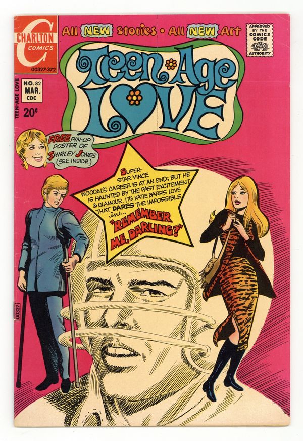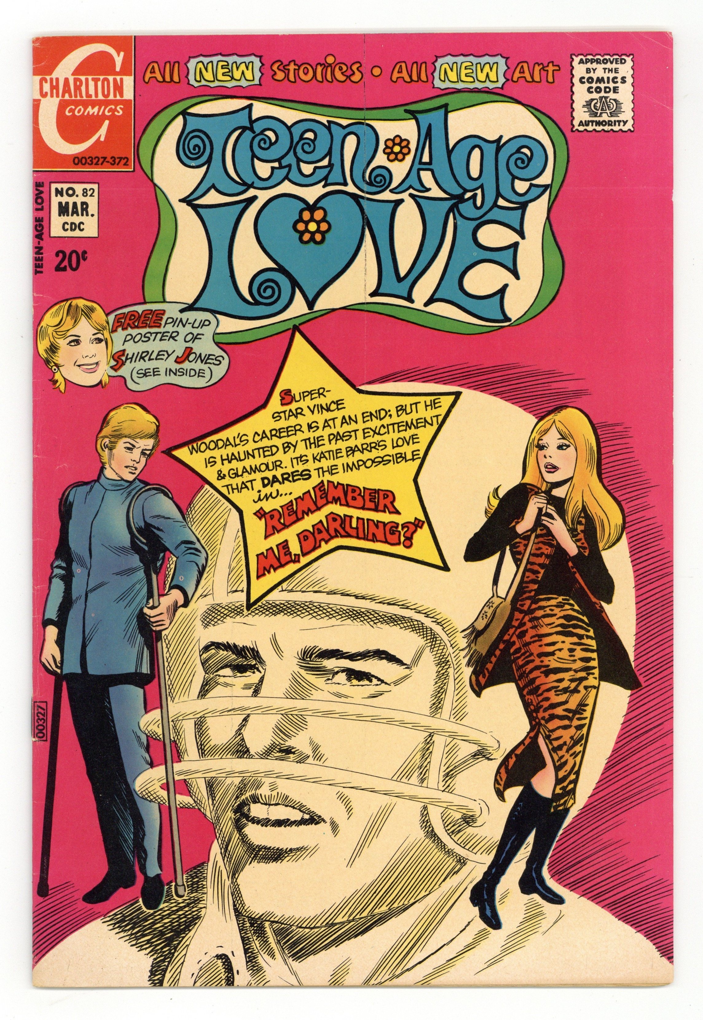 Published Mar 1971 by Charlton Comics Group.$20.00Cover by Art Cappello and Sal Gentile. Stories and art by Frank Bolle, Vince Alascia, and Gustavo Trigo (credited as Marcos Adan). Charlton's long-running romance comic coincides with the blossoming of America's teen culture from the 1950s to the 1970s. A married couple's argument turns out to be their first, as they are on their honeymoon. After an injury ends football star Vince's career, Kate tries to give him the strength to go on. Charlton's romantic hippie hero, Jonnie Love, meets Gina and her jealous boyfriend when his motorcycle runs out of gas. Plus a pin-up of screen legend Shirley Jones, star of TV's The Partridge Family. Remember Me, Darling?; Jonnie Love: Make Room in Your Heart for Me; Its a Small World; True Friends; Never Again!; Just Jeannette; That Man. 32 pages, Full Color. Cover price $0.20.