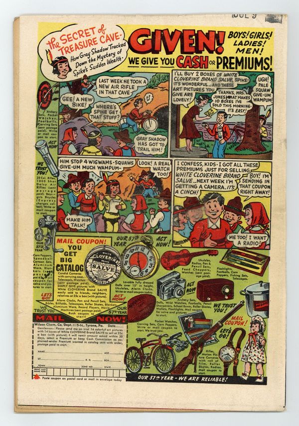 $255.00Issue #1 is numbered #127 with a cover date of Aug.-Sep. 1952. The title was previously All-American Western. 36 Pages, Full Color. Cover price $0.10.