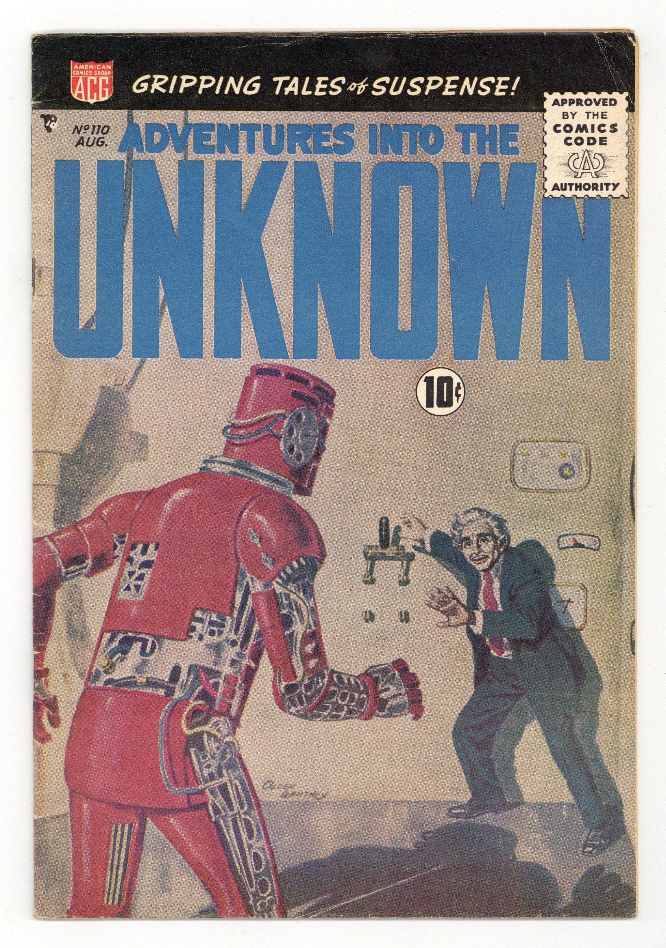 $18.50Cover art by Ogden Whitney. The Thing Called Jeremy!, script by Richard E. Hughes [as Shane O'Shea], art by Paul Reinman; Phineas Trimble builds an android that he passes off as his adult son, but they argue after the android falls in love with a girl and Trimble accidentally destroys his creation. They'll Never Believe Me!, script by Richard E. Hughes, art by John Forte. The Pipes of Pan, script by Richard E. Hughes [as Bob Standish], art by John Buscema. Dark Journey, script by Richard E. Hughes [as Thomas R. Drew], art by Paul Reinman. The Plant that Remembered!, script by Richard E. Hughes [as Jonathan Burns], art by Al Wenzel; Roger Dennis steals a golden idol from a tribe in the Amazon jungle, but the reach of vengeance follows him home and eventually forces him to confess. 36 pgs. Cover price $0.10.