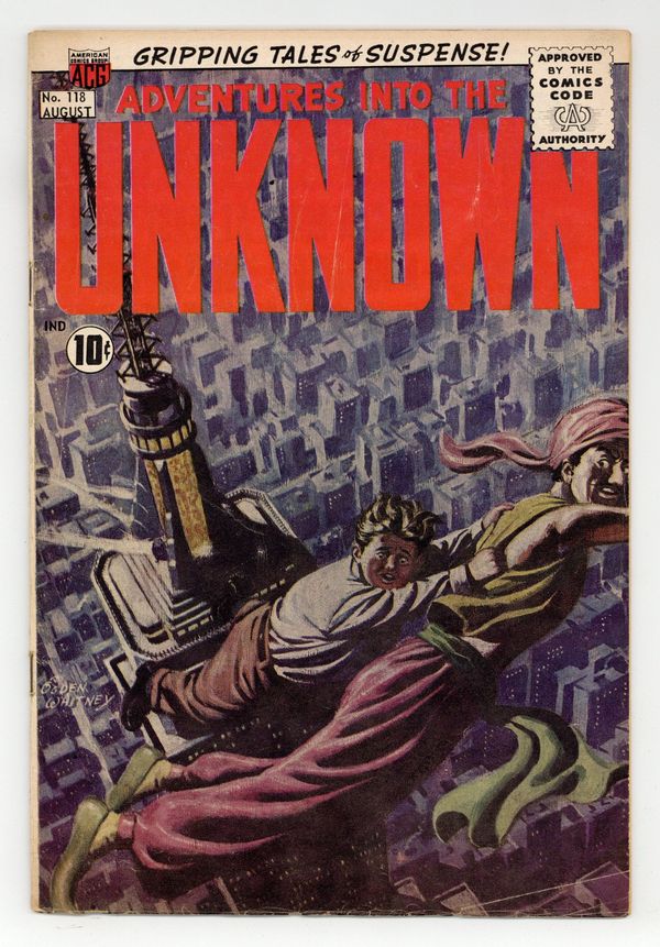 $21.50"The Amazing Adventures of Aladdin Axelrod!" (script by Richard Hughes as "Shane O'Shea"; art by John Rosenberger); "The House That Danced!" (script by Kermit Lundgren, art by John Forte); "The Strange Tale of Flying Phineas!" (script by Hughes as "Kurato Osaki"; art by Paul Reinman); and "Lucky Talisman!" (art by Rosenberger). Ogden Whitney painted cover art. Cover price $0.10.
